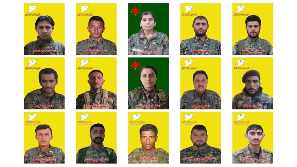 ROJAVA – QSD Basın Merkezi, Onur Direnişi’nde şehit düşen 15 savaşçının kimlik bilgilerini açıkladı.