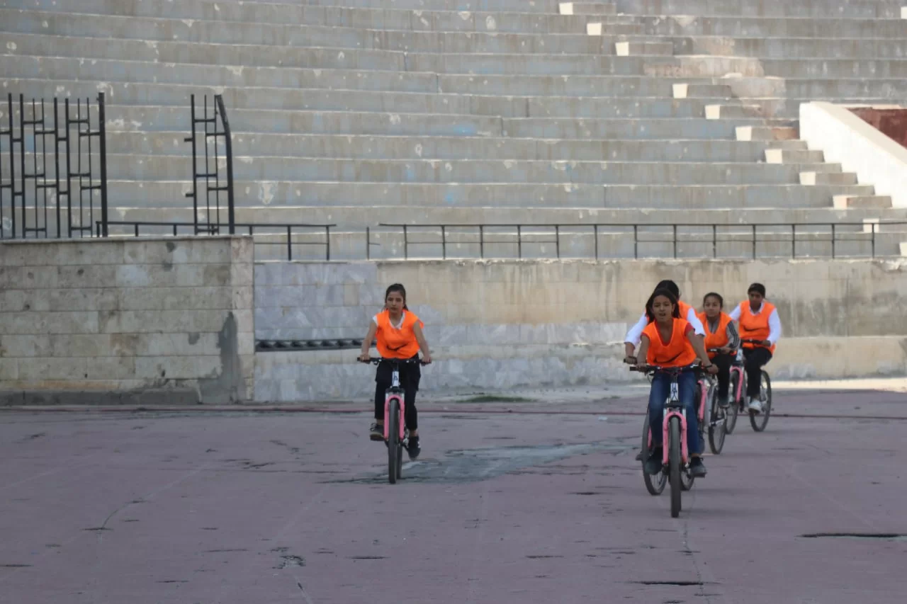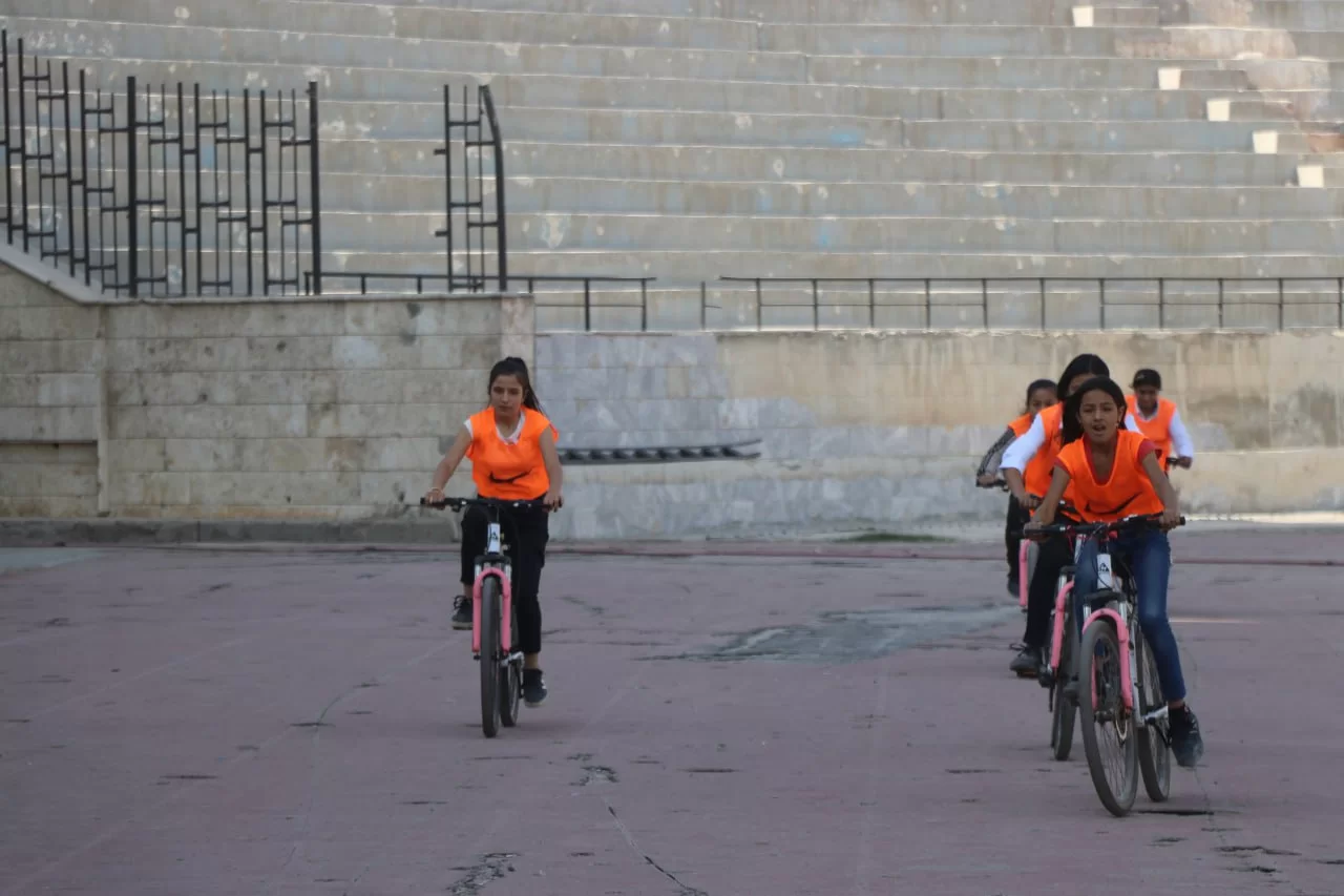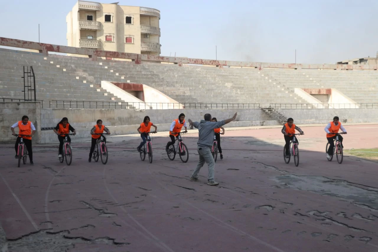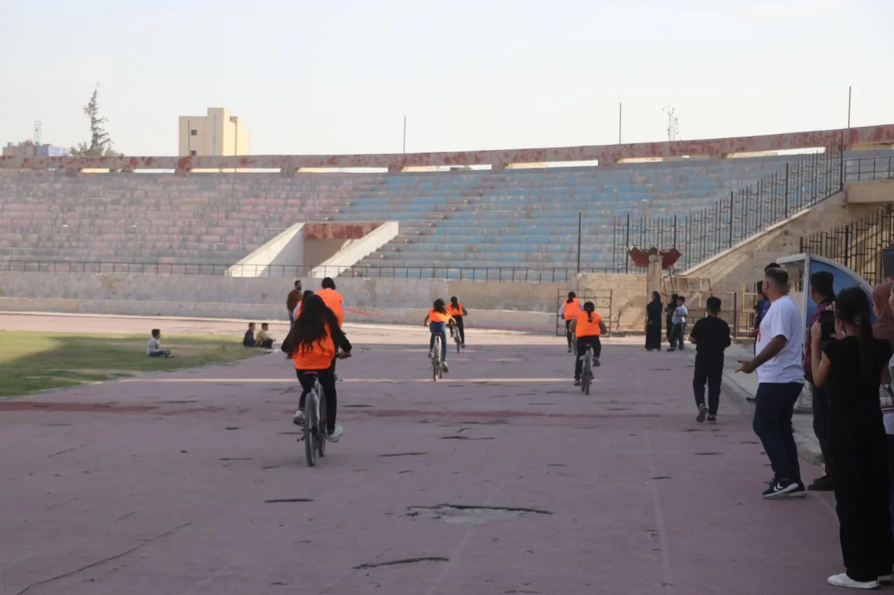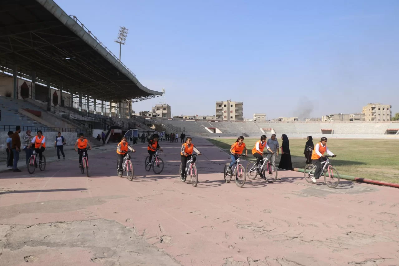 RAKKA – Rakka Kantonu Genç Kadınlar Birliği, kadınların spora katılımını teşvik etmek amacıyla Rakka Belediyesi Stadyumu’nda bir bisiklet yarışı düzenledi. Yarışa genç kadınlar katıldı.