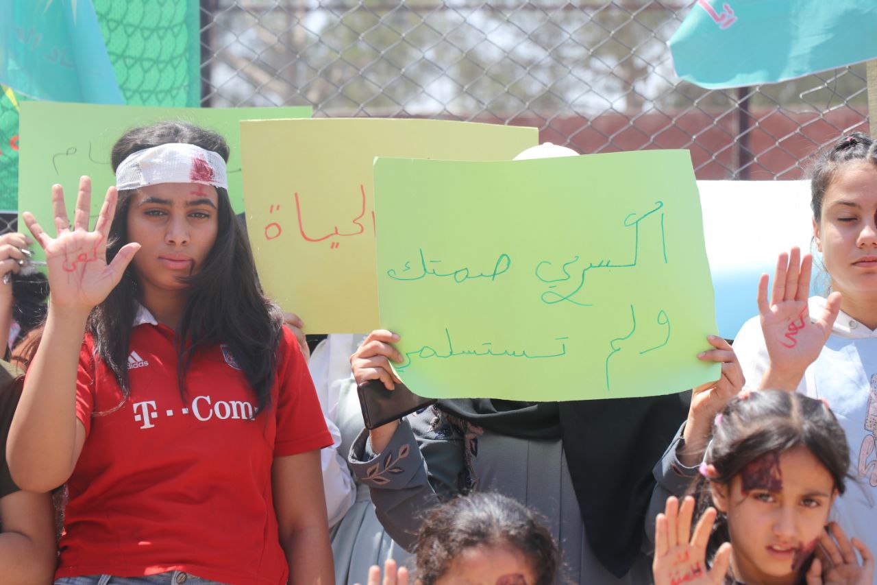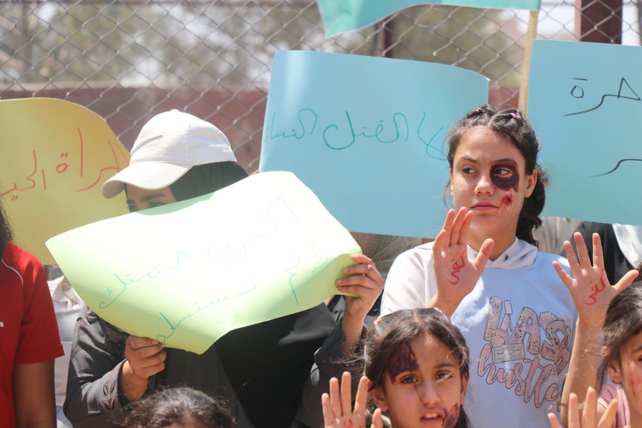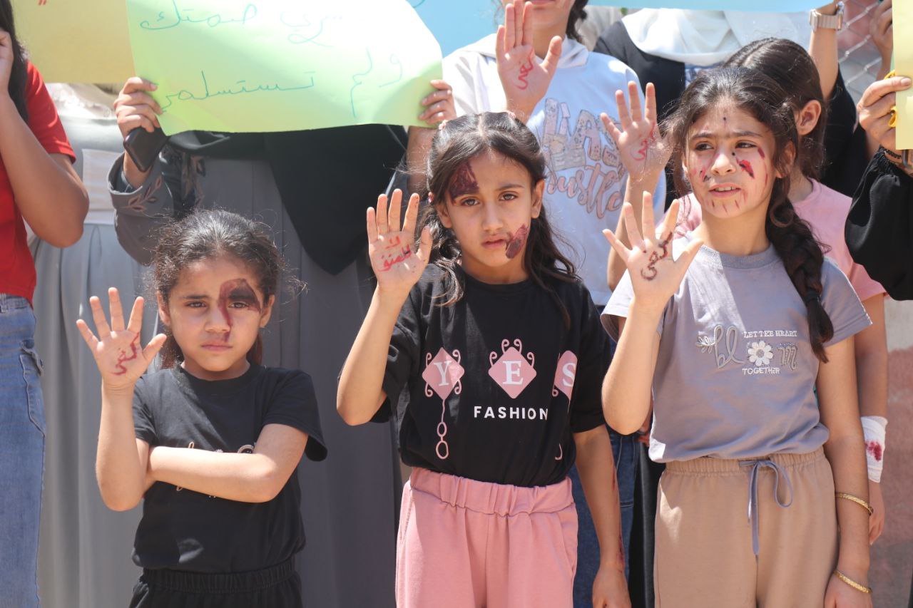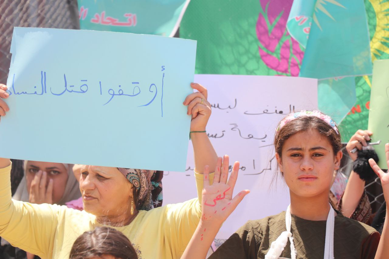 Arapça yapılan açıklama, Arapça “Kadına yönelik şiddete hayır” ve “Jin Jiyan Azadî” (Kadın, Yaşam, Özgürlük) sloganlarıyla sona erdi.