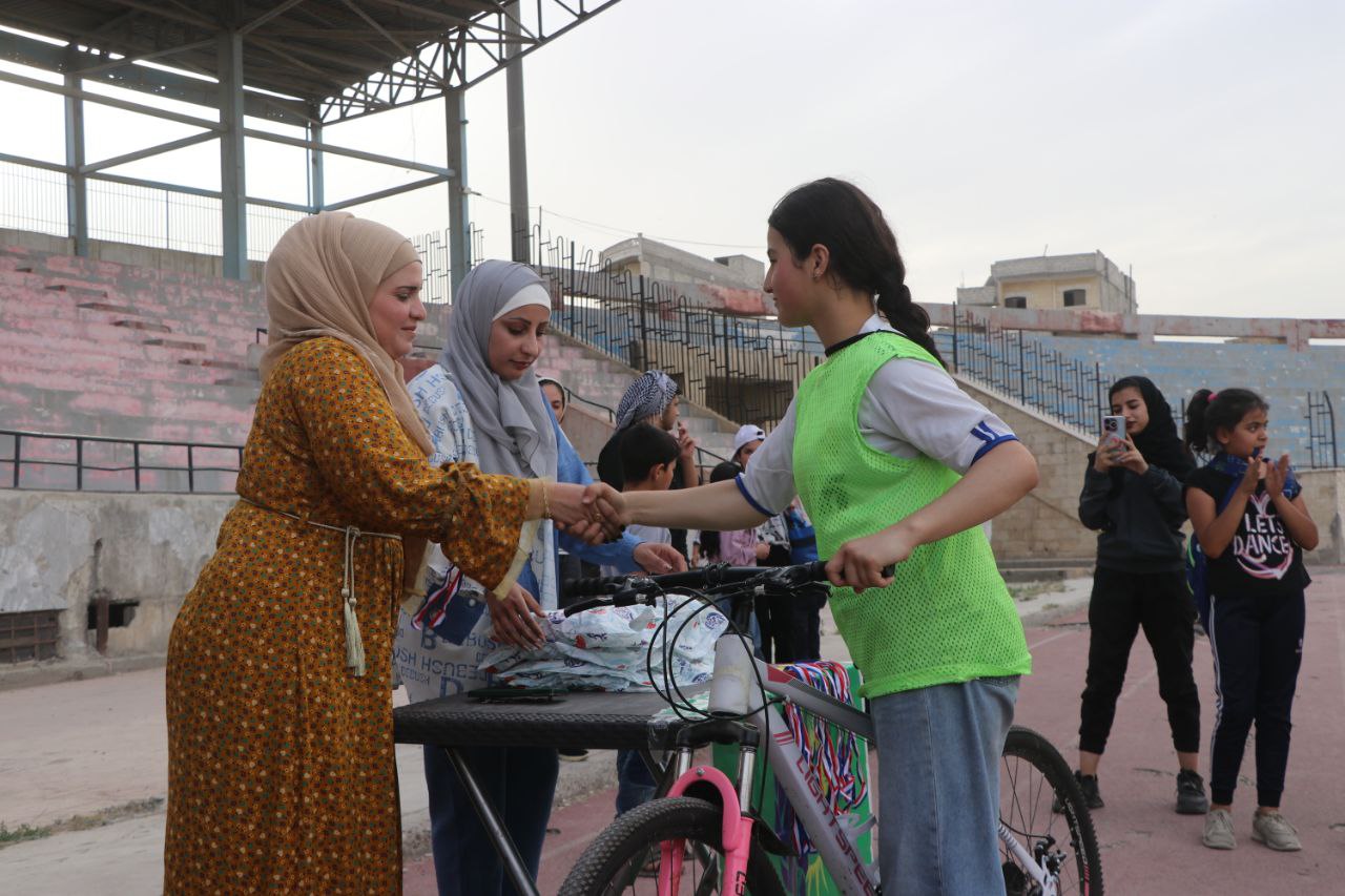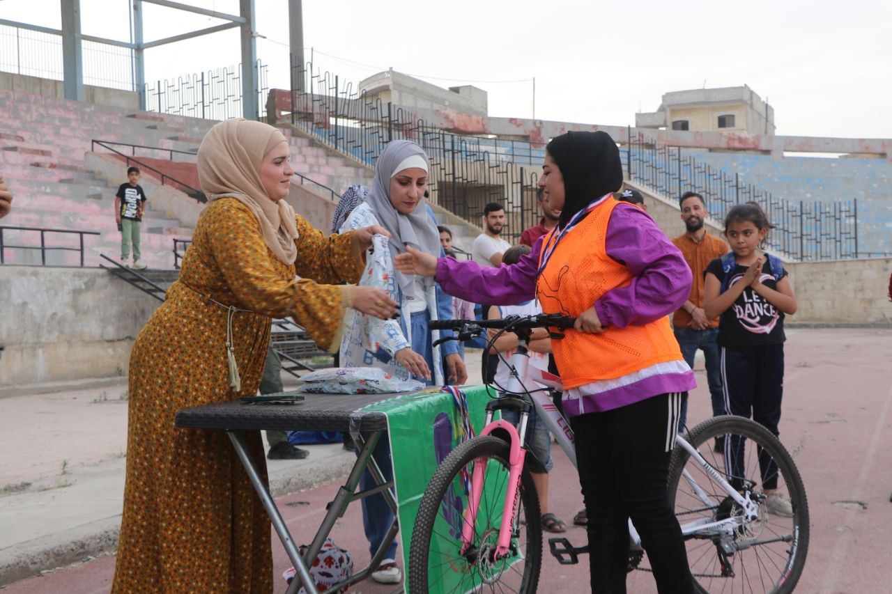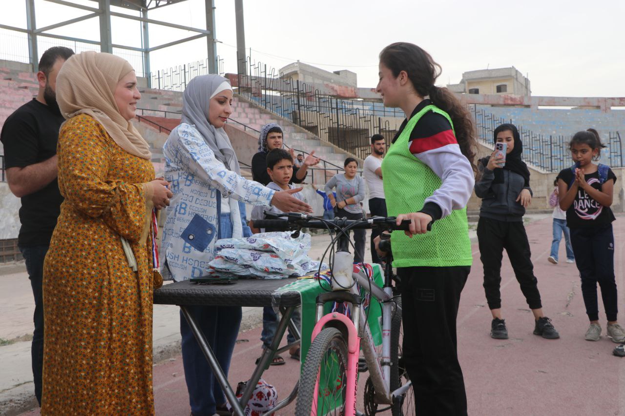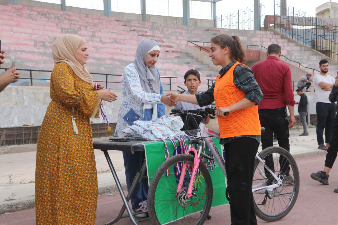 RAQA – Gençlik ve Spor Meclisi Genç Kadınlar Komitesi bugün Raqa şehrinde genç kadınlar arasında bisiklet yarışması düzenledi. Yarışma Al-Rashid Park’ından başlayan yarışma Belediye Stadyumu’na kadar devam etti.