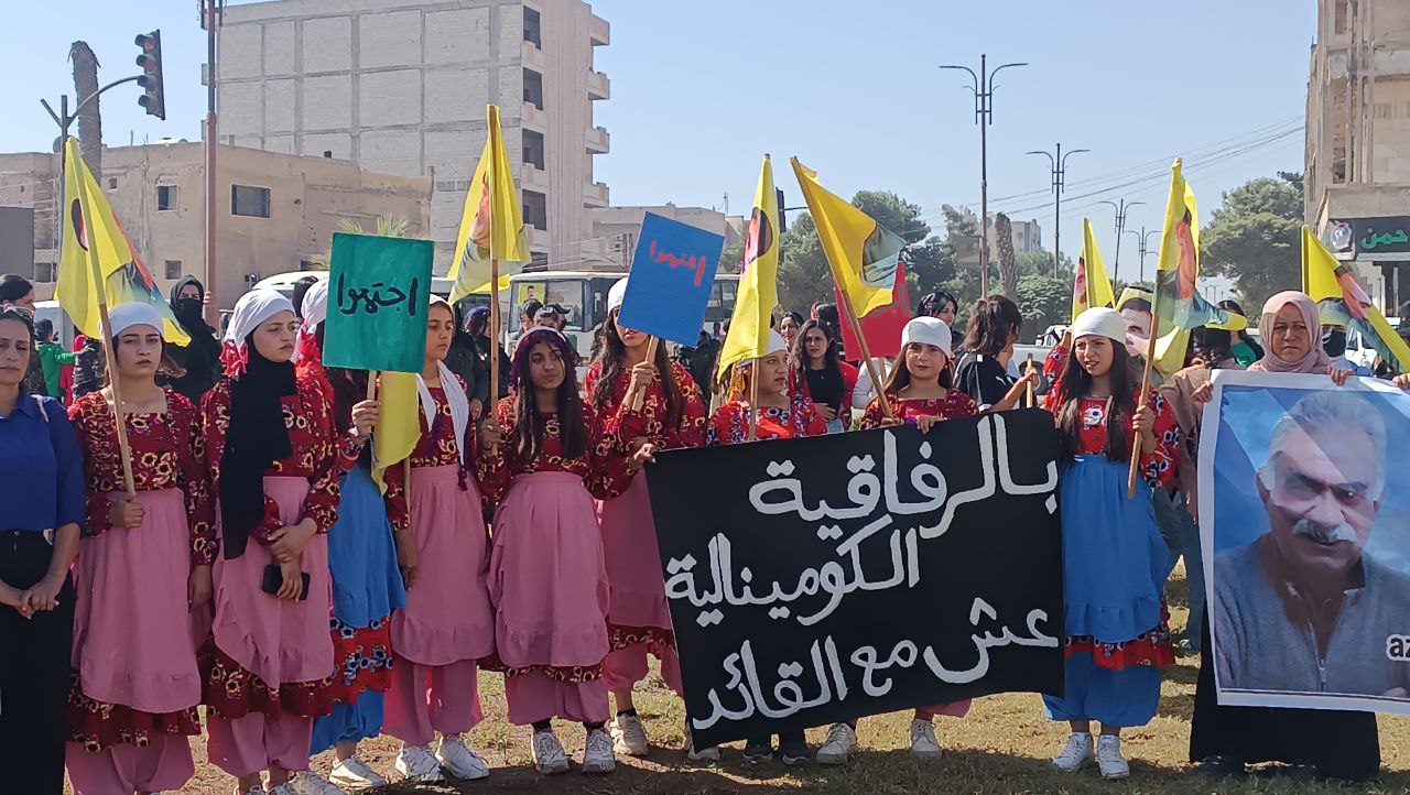 Genç kadınlar adına açıklama yapan Nur El Hesen, Önder APO’nun 1999 yılından bu yana ağır tecrit ve işkence koşullarında tutulduğunu belirterek, “Tüm baskılara rağmen Önder APO asla teslim olmadı. Onun barış ve demokratik toplum vizyonu, halklar arasında yaşam bulan bir mücadeleye dönüştü” dedi.