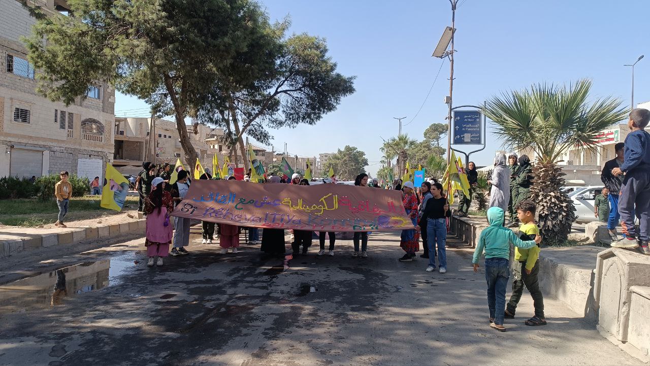 Yürüyüş, sabah saatlerinde eski Çocuk Hastanesi önünde başladı ve Rakka Şehri’ndeki Özgür Kadınlar Meydanı’na kadar sürdü. Sloganlar ve pankartlar eşliğinde gerçekleşen yürüyüşte genç kadınlar, barış ve özgürlük taleplerini dile getirdi.