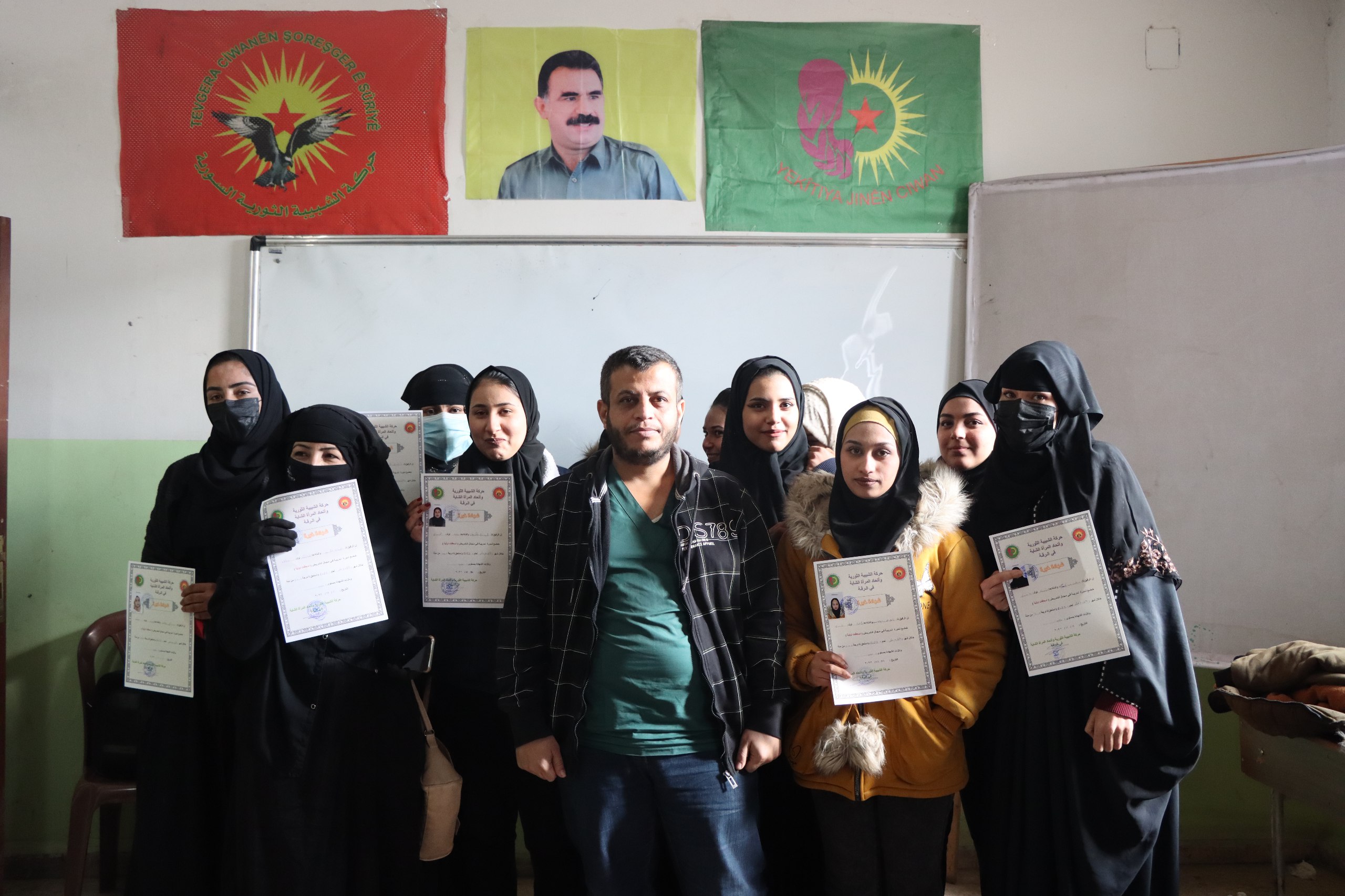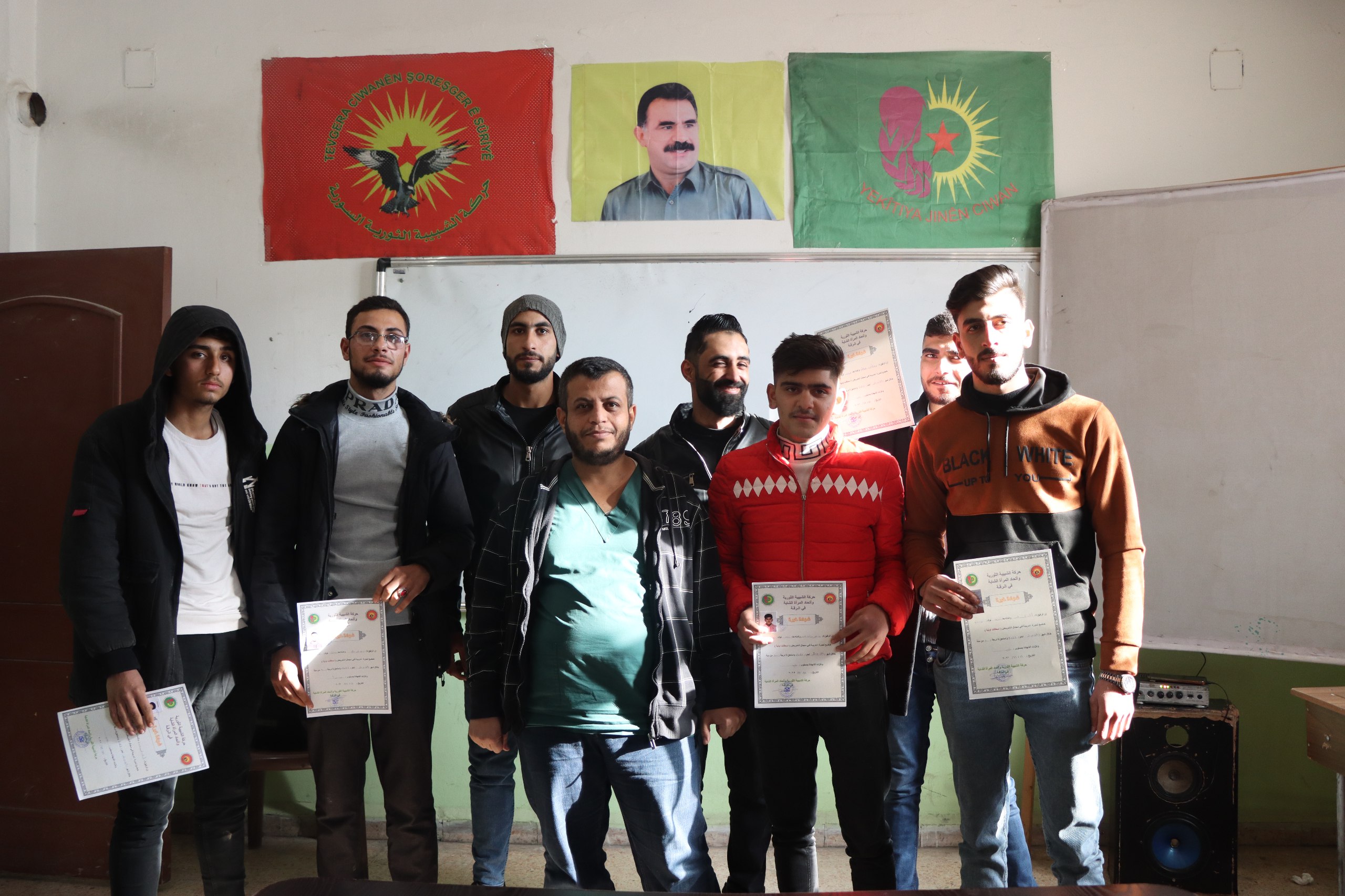 RAKKA- Rakka kentinde Devrimci Gençlik Hareketi’nin “Devrimci Halk Savaşı” stratejisi kapsamında Rakka kentinde 26 gençten oluşan bir gruba ilk yardım kursu açıldı. Bir ay süren devrede kaza ve zehirlenme durumunda ilk yardım, suni teneffüs, kalp masajı, yanma veya donma durumunda yapılması gerekenler, kırık ve burkulma durumunda ilk yardımın yanı sıra iğne vurma ve pasuman yapma gibi temel ilk yardım çerçevesinde dersler verildi.