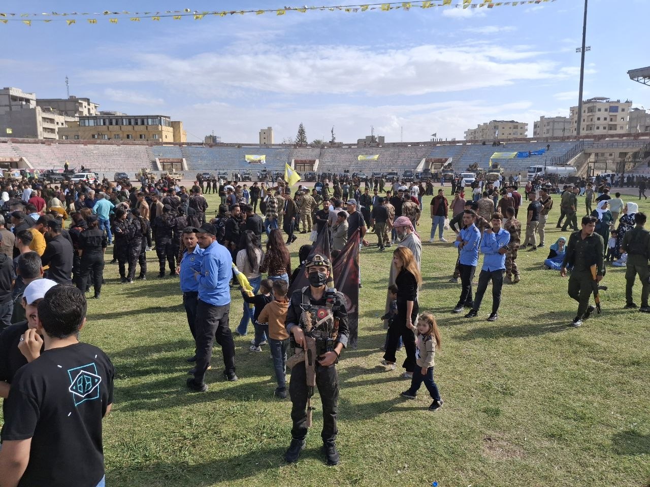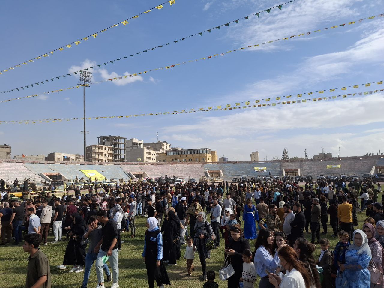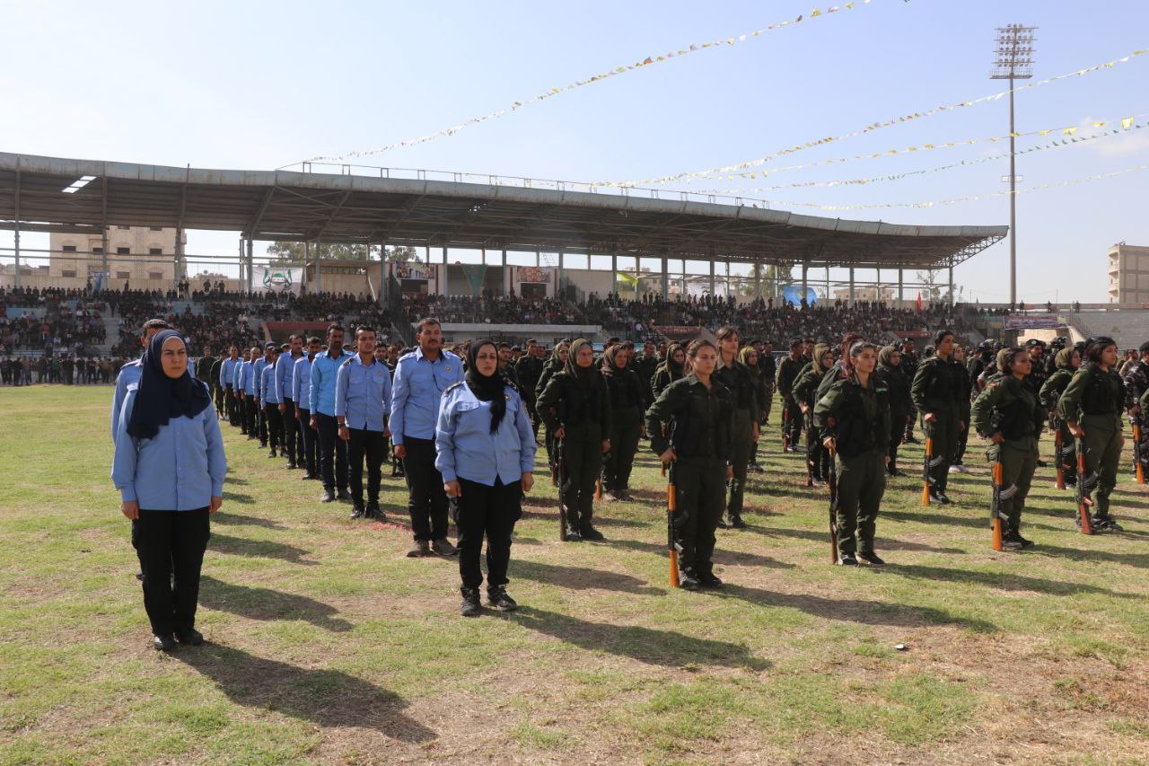 Kutlama, QSD savaşçıları ve İç Güvenlik Güçleri’nin askeri geçit töreniyle başladı. Ardından sivil ve askeri kurumların temsilcileri tarafından konuşmalar yapıldı. Mesajlarda, Rakka’nın kurtuluşunda ve Kuzey ve Doğu Suriye’de insani yardım projesinin hayata geçirilmesinde QSD’nin rolü ve bölgesel bileşenlerin dayanışmasına dikkat çekildi.