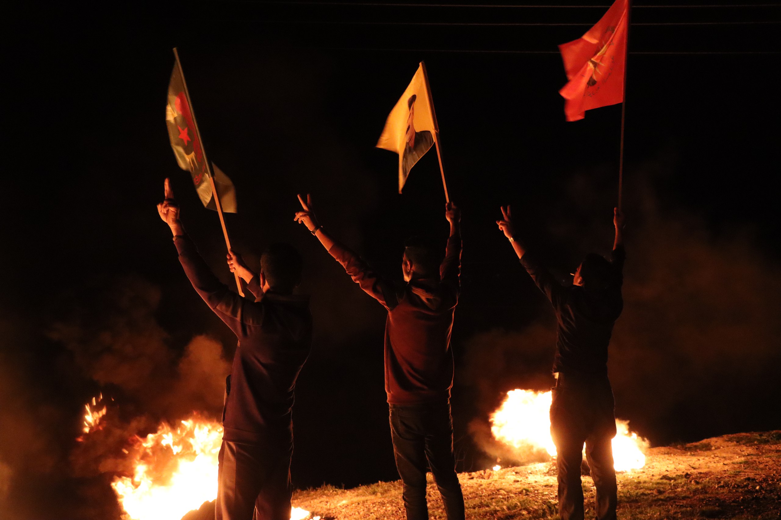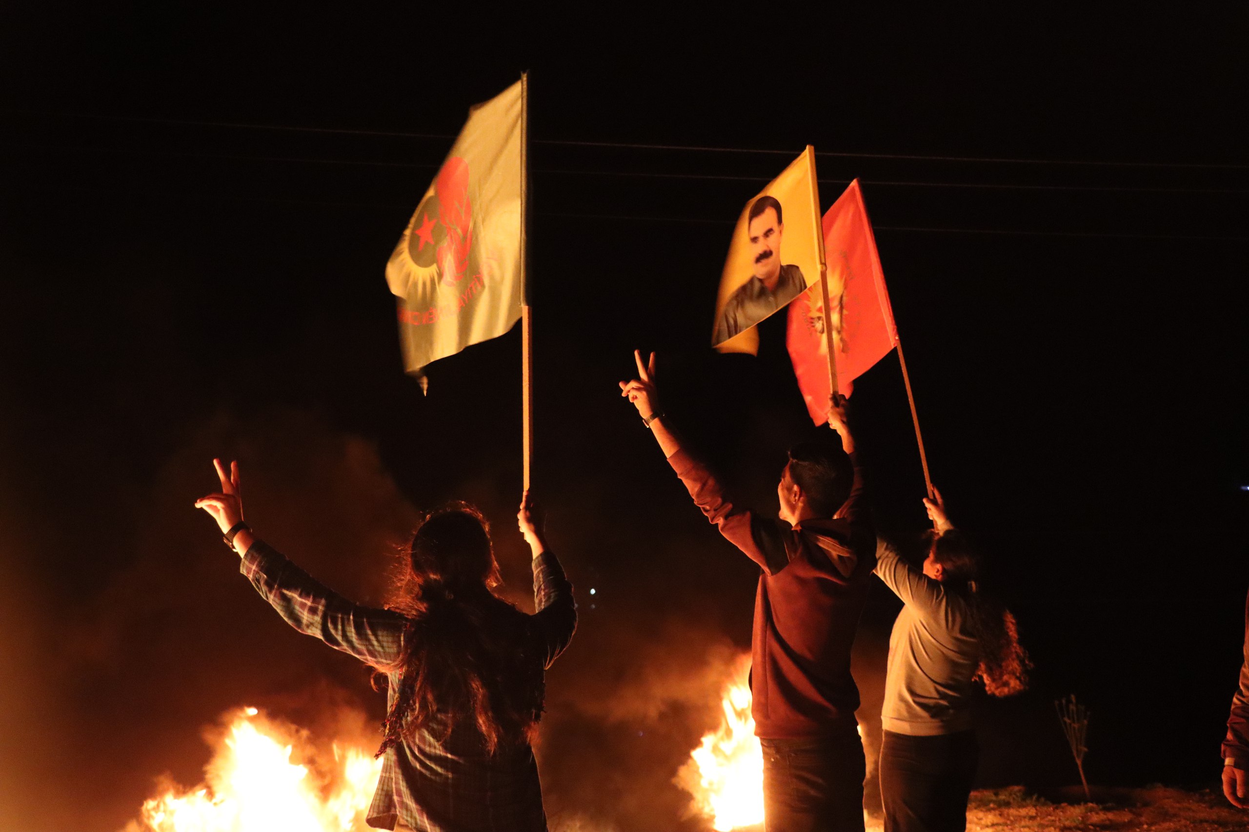 Yakılan ateşin ardından devrim şarkılar ve sloganlar eşliğinde halayla çekildi.