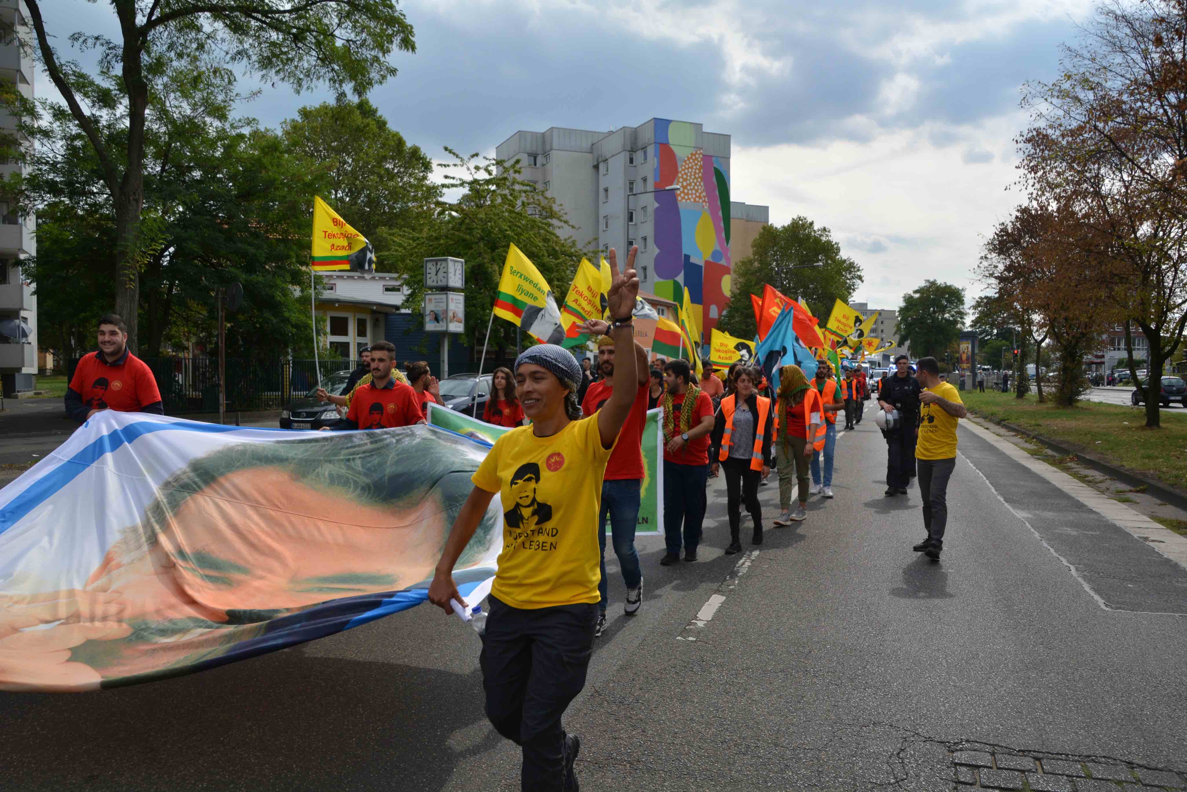 Yürüyüşe İsviçre’den katılan Zeki, “Önderliğimizin özgürlüğü için Uzun Yürüyüş yapılacağını duyduğumda yürüyüşe katılmak için çalıştığım işyerinden izin aldım ve 9 Eylül’den beri eylemdeyim. Türk ırkçıları ve Alman polisinin yürüyüşümüzü provoke edip iptal ettirme girişimleri sonucu dün gözaltına alındım ama bugün eyleme kaldığım yerden devam ediyorum. Devletlerarası komplo ile esir alınan Önderliğimizin özgürlüğü için bugün burada olmayan tüm gençleri de yürüyüşe çağırıyorum. Gençlerin birlikte mücadelesi faşizmi yenecek, Rêber APO’yu özgürleştirecektir.” değerlendirmesini bizimle paylaştı.