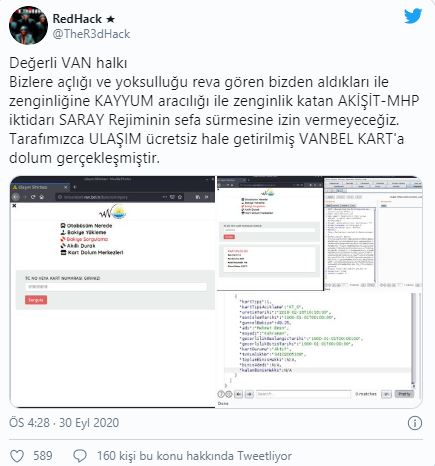 Sanal medya platformu Twitter üzerindeki hesabından bir açıklama yayınlayan Red Hack açıklamasında “Değerli Van halkı. Bizlere açlığı ve yoksulluğu reva gören, bizden aldıkları ile zenginliğine KAYYUM aracılığı ile zenginlik katan AKİŞİT-MHP iktidarı SARAY Rejiminin sefa sürmesine izin vermeyeceğiz.Tarafımızca ULAŞIM ücretsiz hale getirilmiş ve VANBEL KART’ a dolum gerçekleşmiştir” ifadelerine yer vermişti.