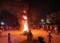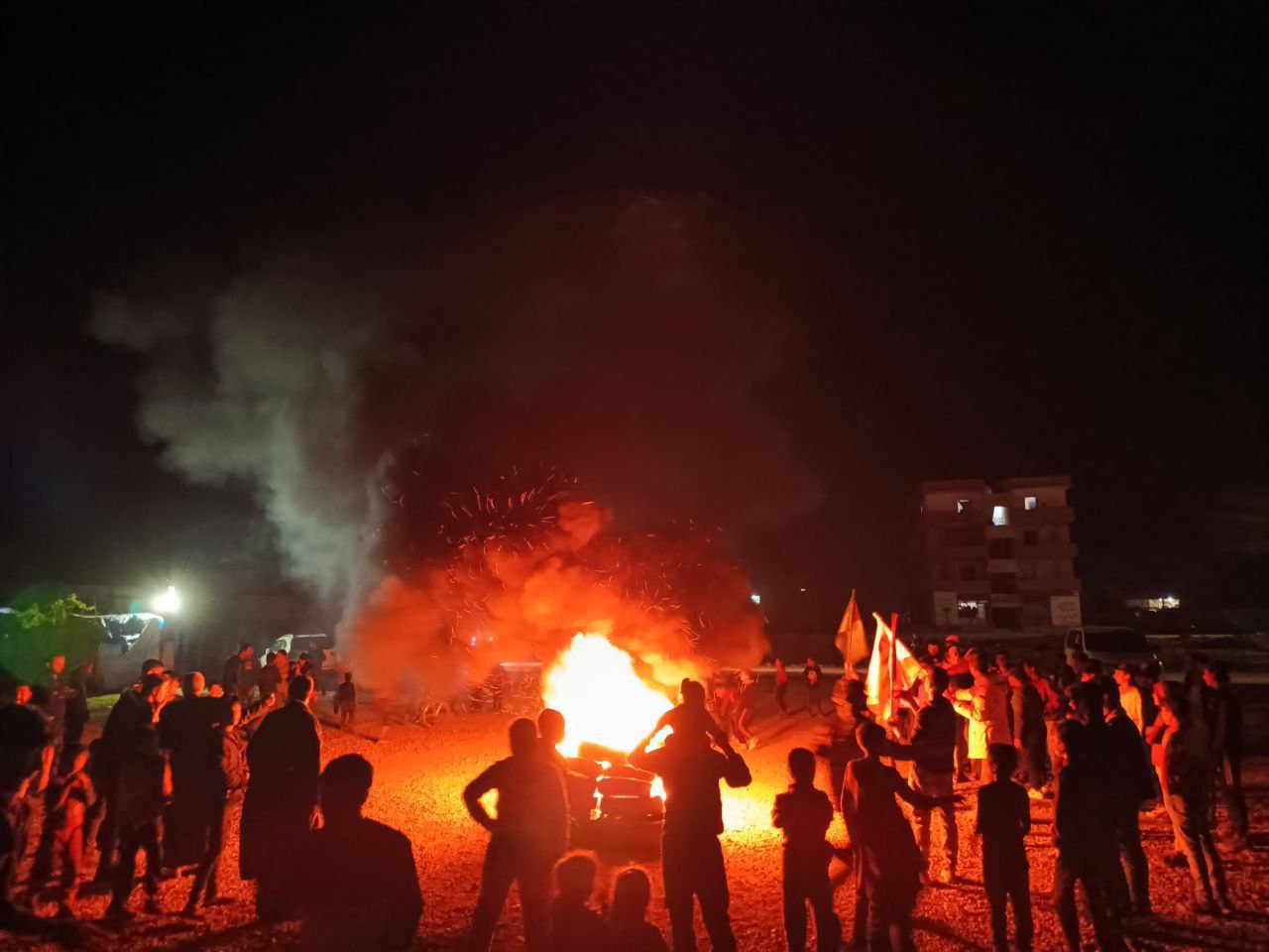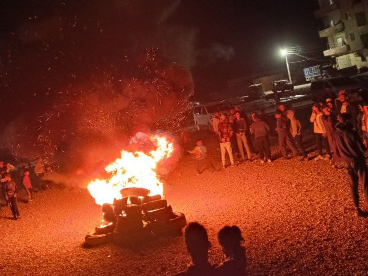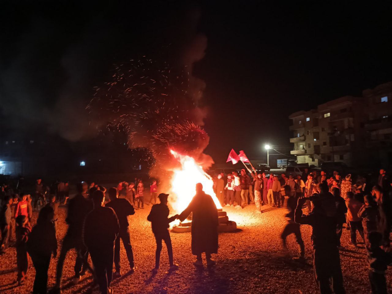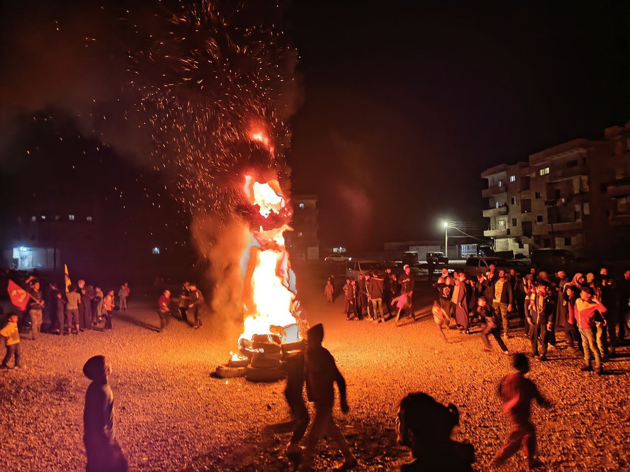 Düzinelerce genç erkek ve kadın Kasrat’taki inşaat alanında Newroz ateşi yakmak için toplandı.