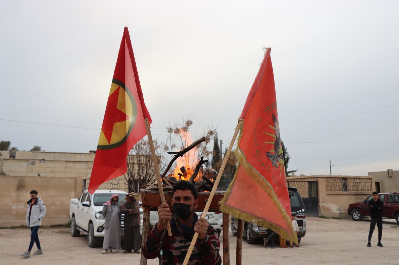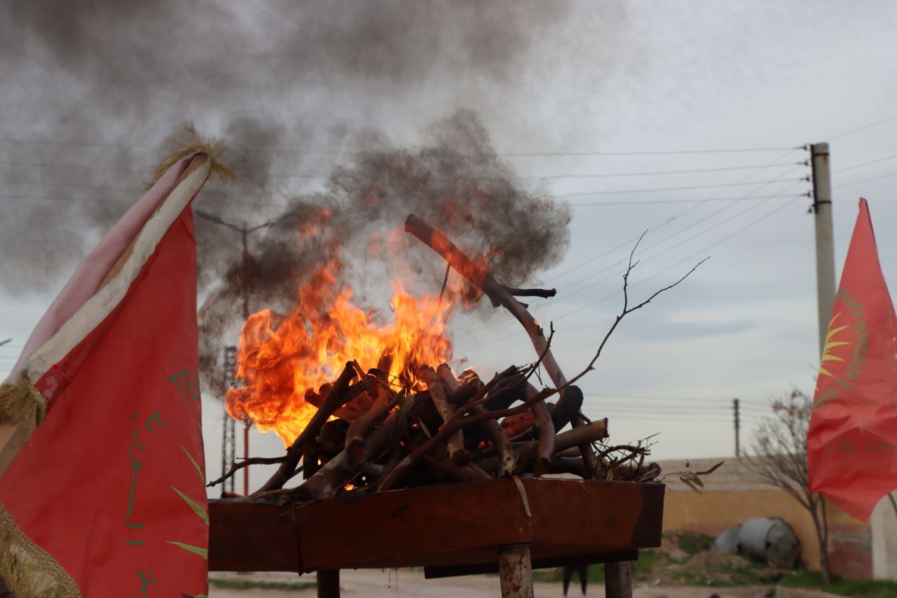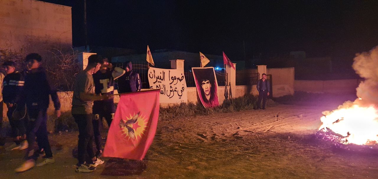 TEBQA- Genç Kadınlar ve Devrimci Gençlik Birliği, bu akşam Tebka kırsalındaki Mansur’da “AGIR BERDE ERŞÊ FAŞİZMÊ” Sloganıyla Newroz ateşini yaktı.
