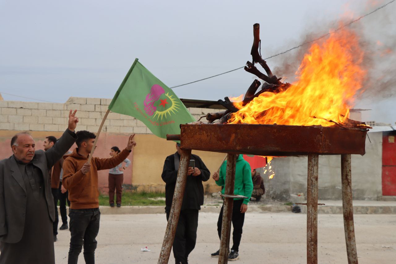 Şehitlerin ruhları anısına bir dakikalık saygı duruşuyla başlayan etkinlik, ateş yakılması ve halayların çekilmesiyle devam etti. Gençler tarafından sık sık Arapça “Bê Serok Jiyan Nabe” sloganları atıldı.