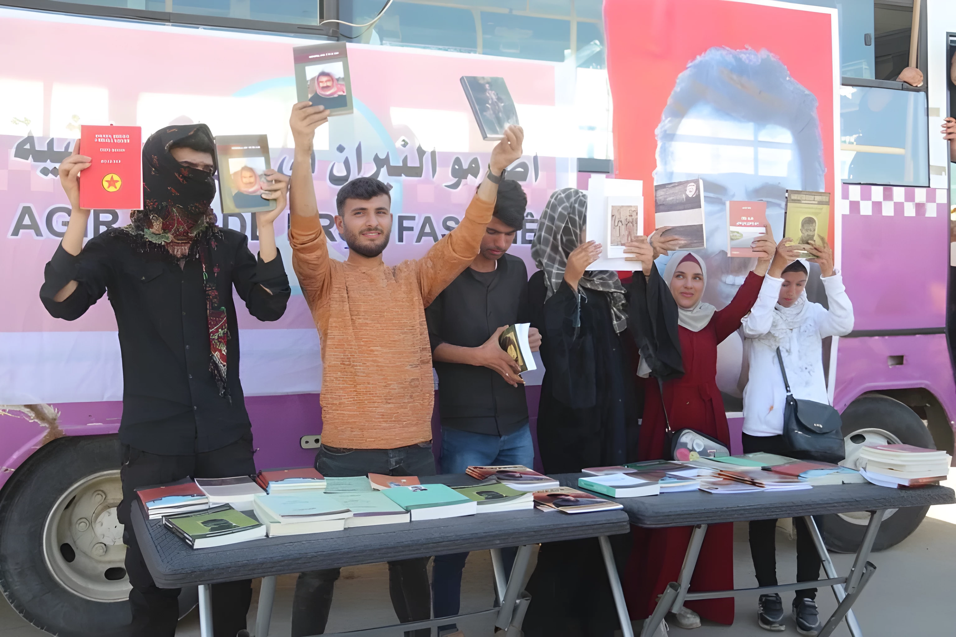REQA- Demokratik Birlik Partisi (PYD) gençleri ve Reqa Devrimci Gençlik Hareketi üyesi onlarca kişi, Reqa’nın Neîm ve Delê kavşaklarında bir araya gelerek Önder APO’nun kitaplarını halka dağıttı.