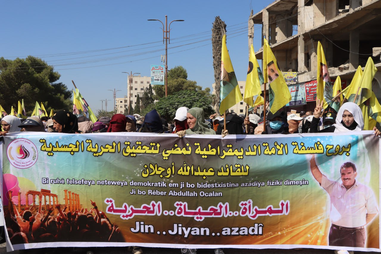 REQA- Zenubiya Kadın Meclisi öncülüğünde yüzlerce Raqa’lı, faşist, işgalci Türk devletinin Önder APO’ya karşı uyguladığı işkence sistemine karşı yürüyüş düzenledi.