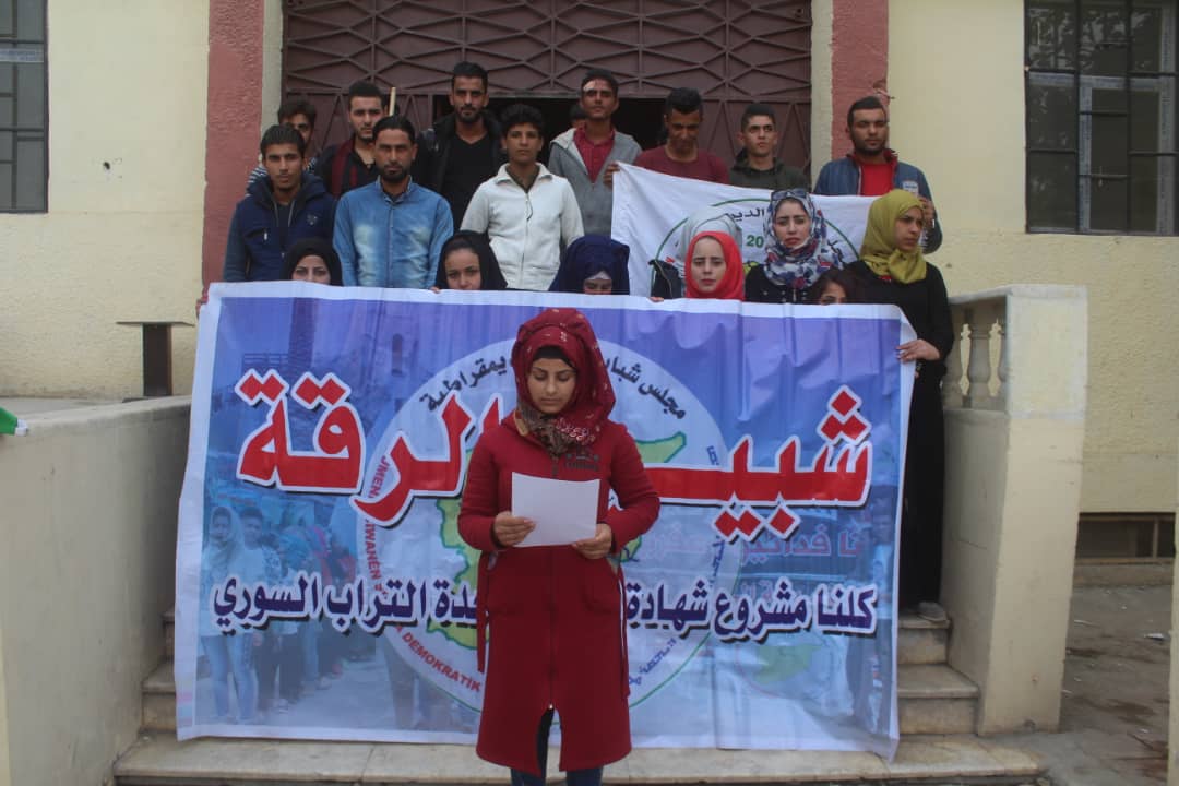 REQA – Reqa’daki gençlik merkezi önünde bir araya gelen gençler, işgalci Türk ordusunun Kuzey ve Doğu Suriye’ye yönelik saldırılarına ilişkin basın açıklaması yaptı.