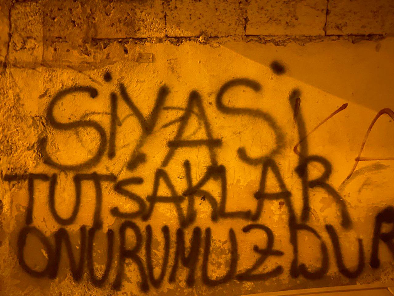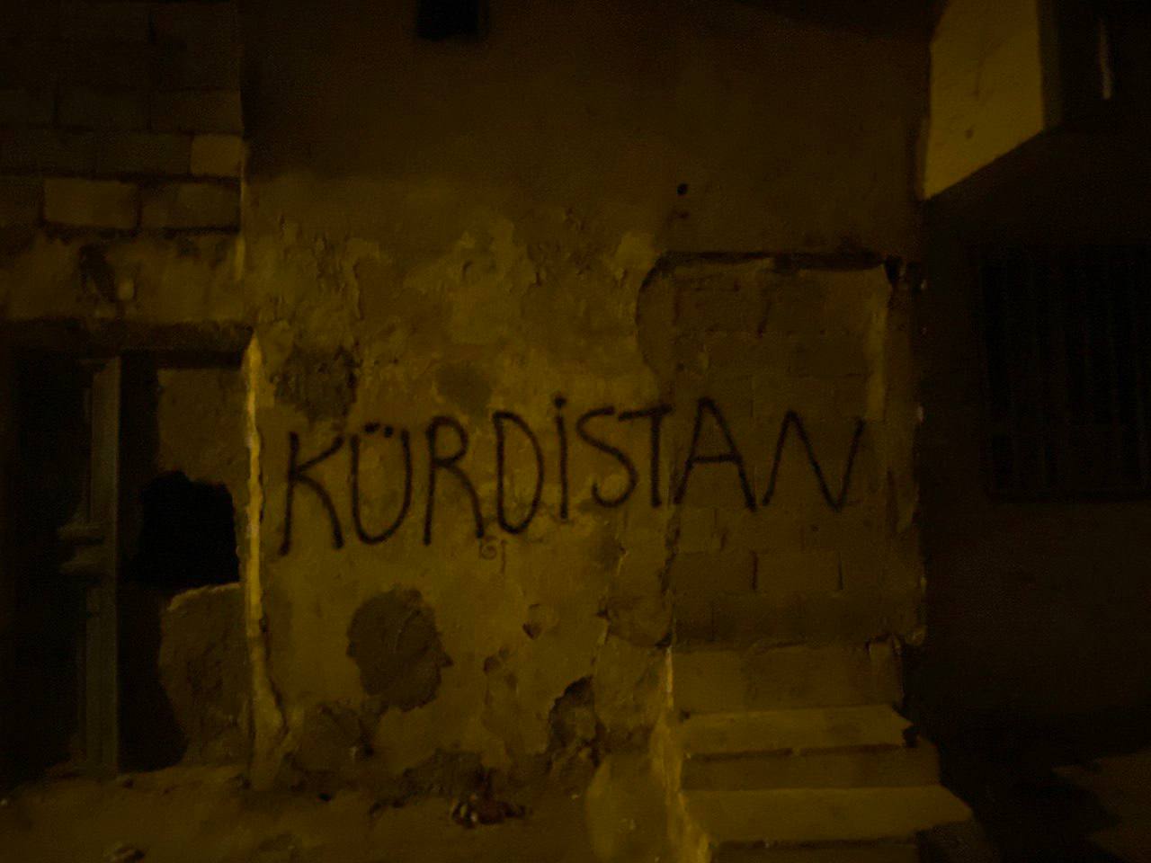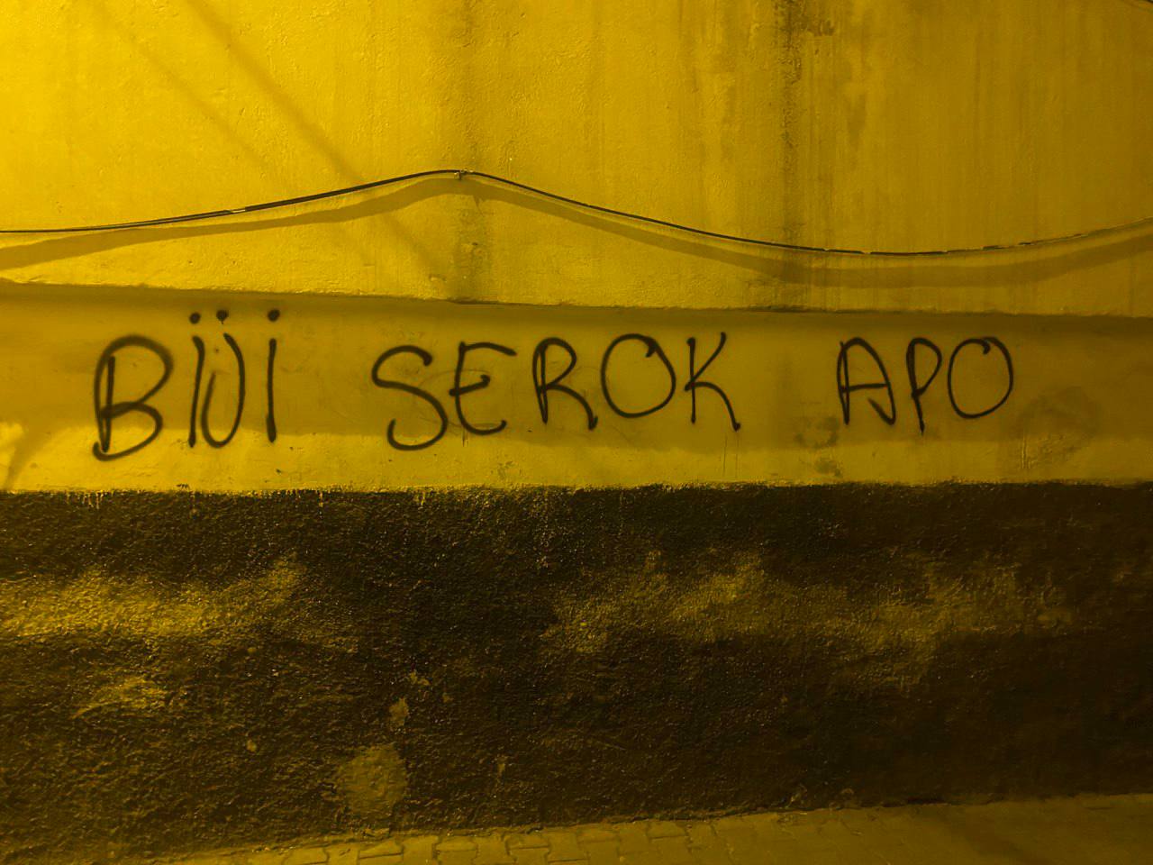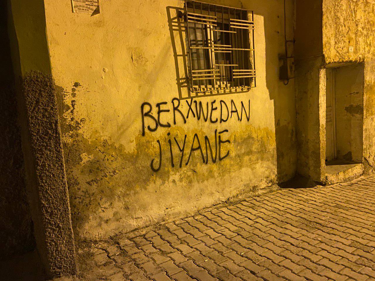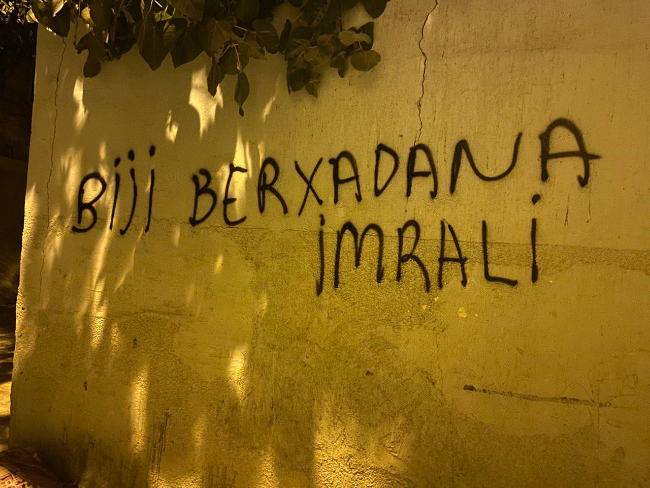 RIHA – Riha yurtsever gençliği, Önder Apo üzerindeki ağırlaştırılmış tecrit ve işkence sistemine karşı, cezaevlerinde siyasi tutsaklara fiziki işkenceler ve Başurê Kurdistan’da yurtsever Kürtlerin katledilmesine karşı yazılama gerçekleştirdi.