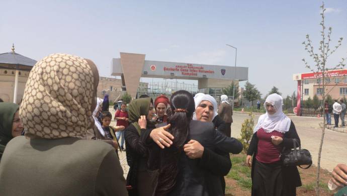 RIHA – Halklar Önderi Abdullah Öcalan’ın üzerindeki ağırlaştırılmış tecride karşı başlatılan açlık grevlerine dikkat çekmek amacıyla tutuklu yakınları Urfa T Tipi Cezaevi önünde bir araya geldi. İşgalci Türk askerleri, cezaevinde bir araya gelen annelere saldırdı. Saldırıya rağmen oturma eylemi başlatan anneler askerler tarafından çembere alındı.