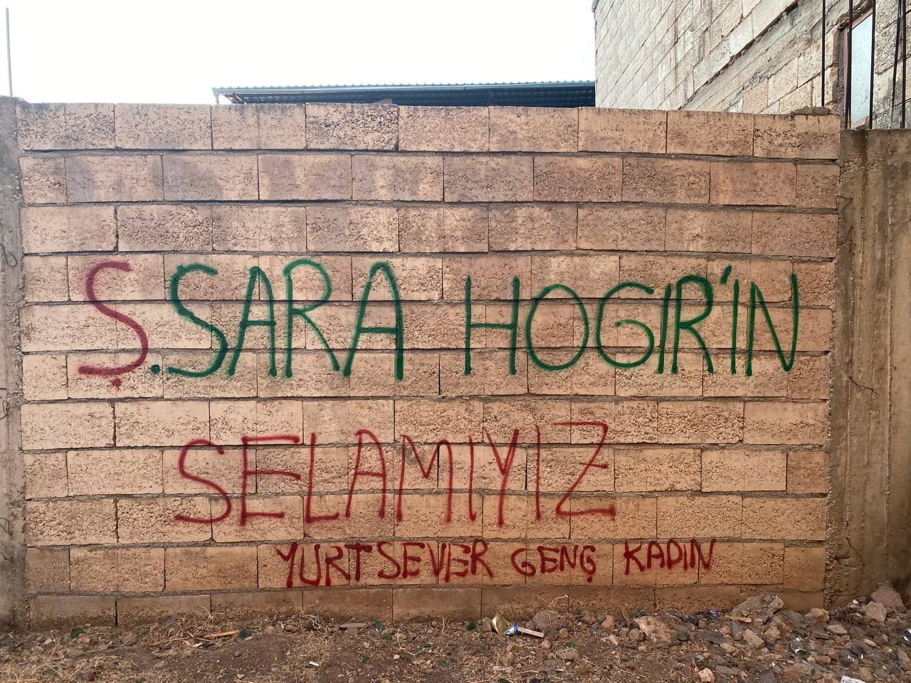 Riha sokakları “Şehid Sara Hogir Riha’nın Selamıyız” yazıları ile donatıldı.