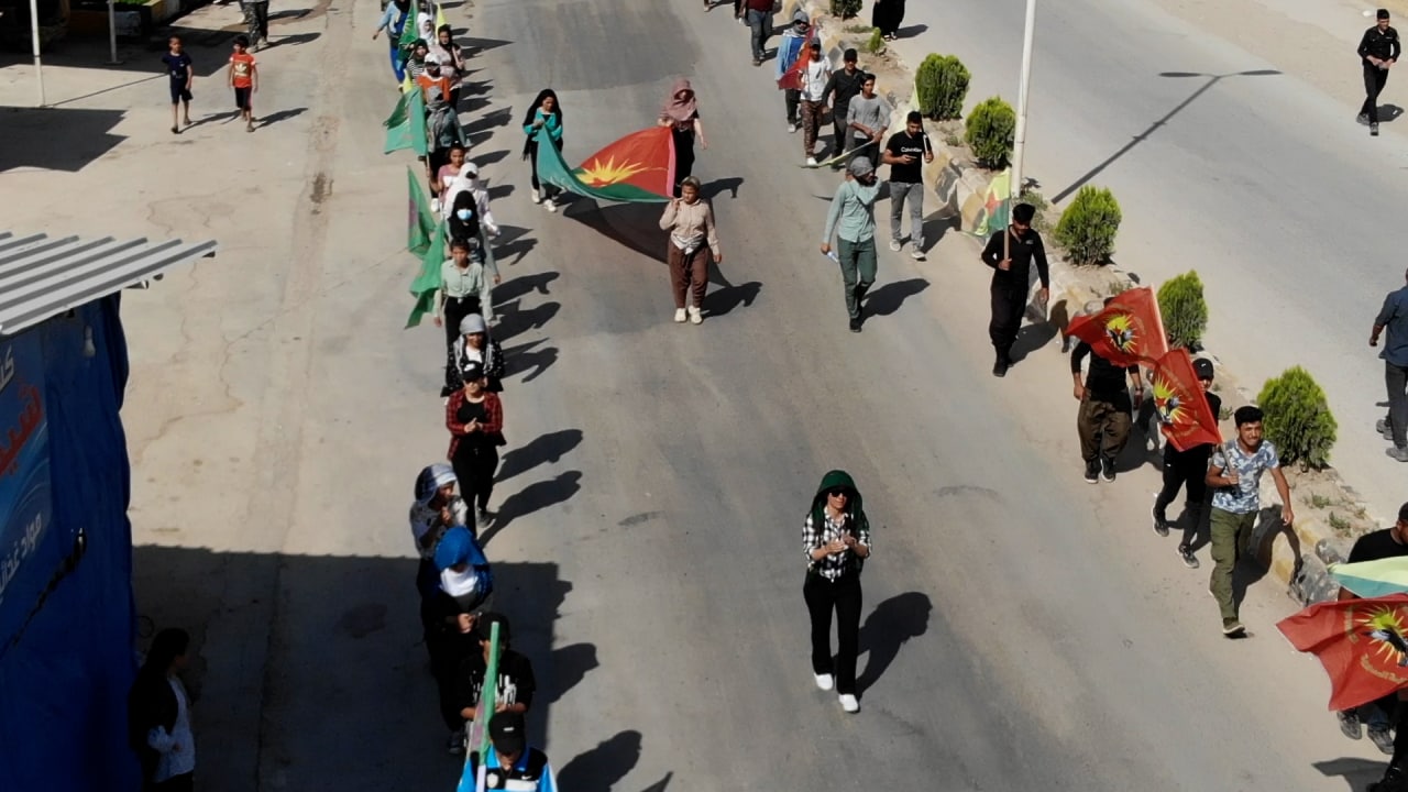 GIRKÊLEGÊ – İşgalci Türk devleti ve işbirlikçi KDP’nin 17 Nisan’da Medya Savunma Alanları’na başlatmış olduğu işgal saldırılarına karşı ilan edilen ‘İhanet ve İşgale Karşı Werin Cenga Azadiyê’ sloganı ile Kuzey-Doğu Suriye’deki Tevgera Ciwanên Şoreşger ve Yekîtiya Jinên Ciwan öncülüğünde 30 Mayıs günü Qamişlo’dan başlatılan uzun yürüyüş, 2 günü ardında bıraktı. Dün gece, Girkêlegê’ye yetişen uzun yürüyüş eylemi 3’üncü gününde büyük bir coşku ile başladı.