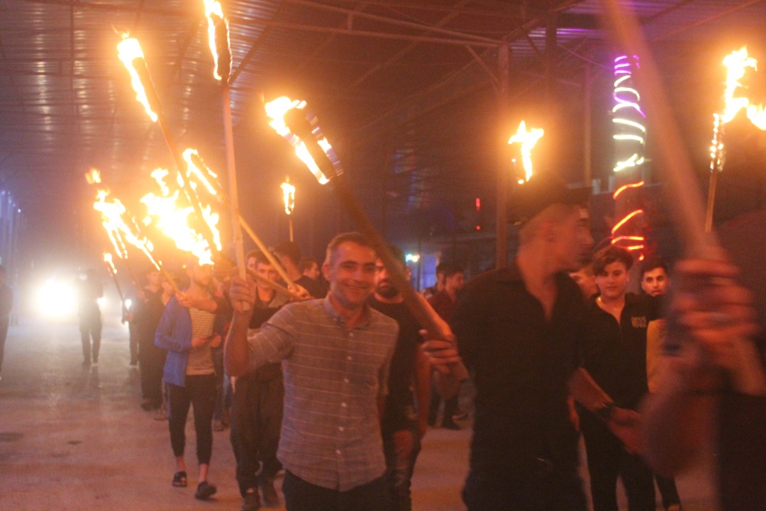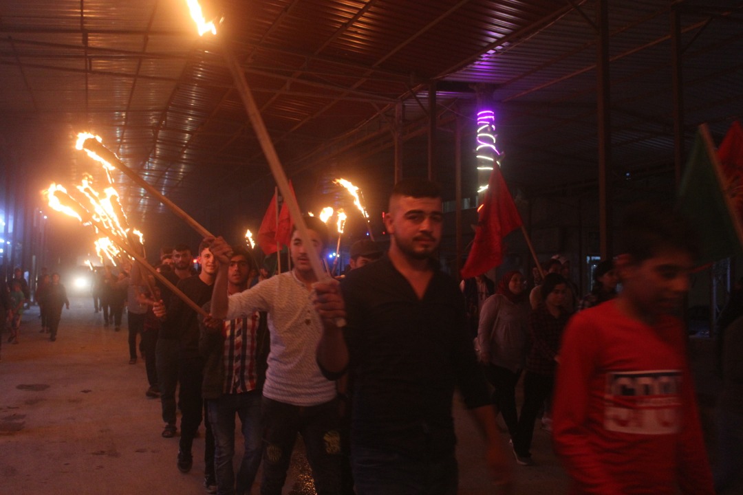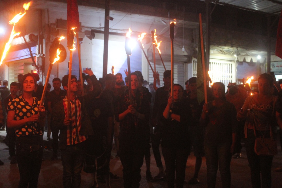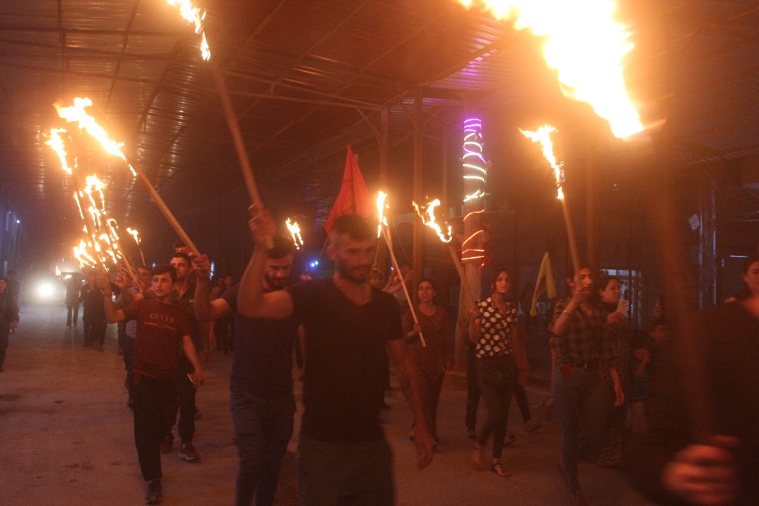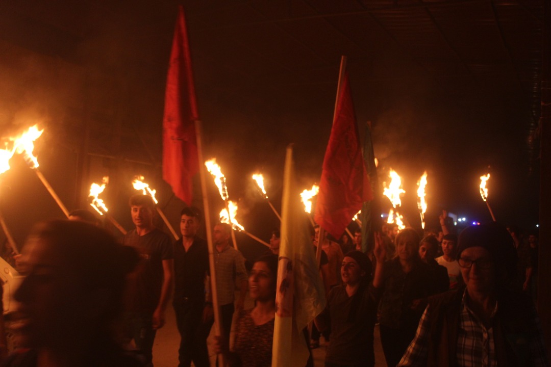 Girkê Legê’deKİ Şehit Xebat Dêrik Meydanı’nda düzenlenen meşaleli yürüyüşte yüzlerce kişi ise çok sayıda kişi sloganlarla Türk devletinin şehit mezarlarına yönelik saldırılarını kınadı, Kürt ulusal birliği çağrısı yaptı.
