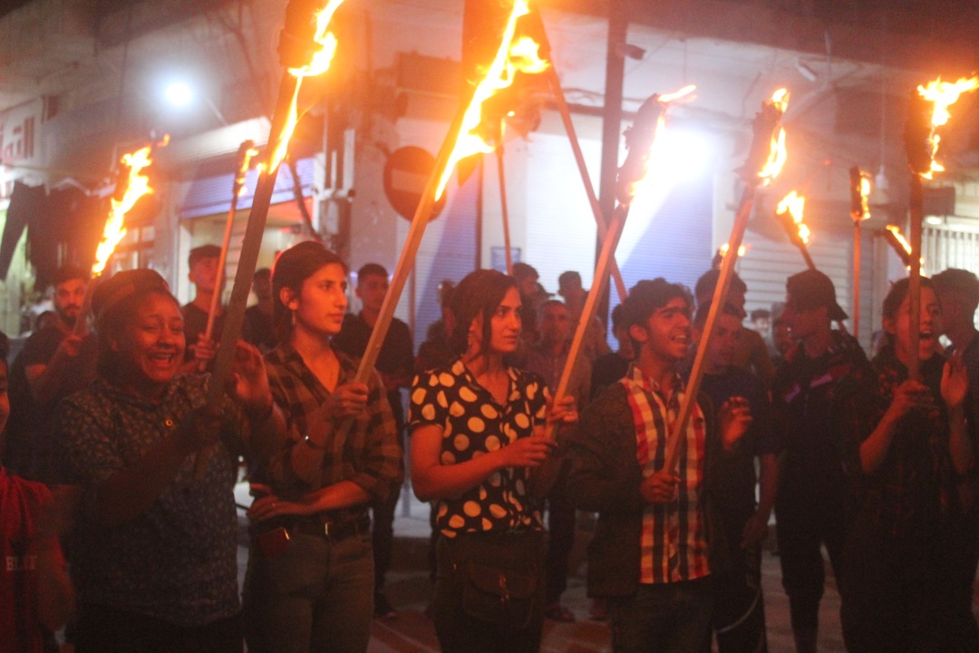 Qamişlo Kantonu’na bağlı Dêrik’te de Devrimci Gençlik Hareketi ve Genç Kadın Meclisi üyeleri, Türk devletinin Kuzey Kürdistan’daki şehit mezarlarına yönelik saldırılarını düzenledikleri meşaleli yürüyüşle protesto etti.