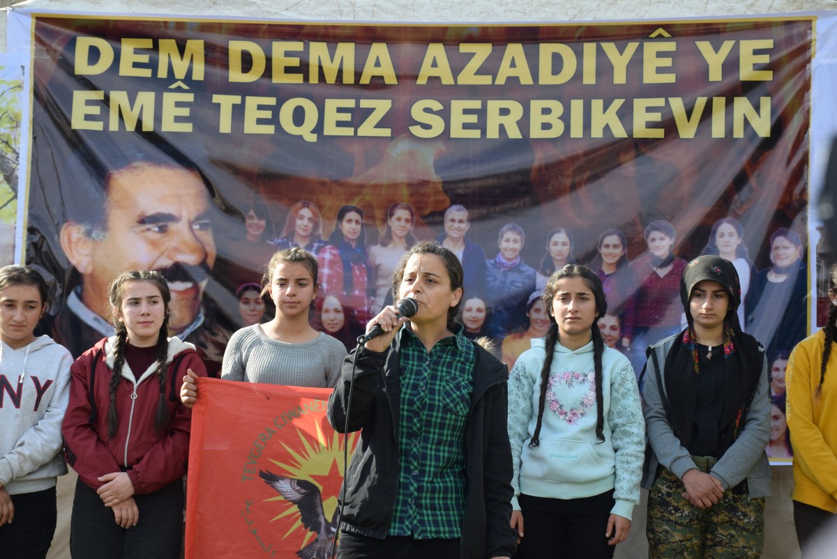 Qamişlo’nun Siyahi mahallesinde başlatılan eylemde, bir dakikalık saygı duruşu ardından konuşma yapan Cizre Bölgesi Yekîtîya Jinên Ciwan üyesi Medya Mihemmed, Halklar Önderi Abdullah Öcalan’a yönelik ağır tecridi kınayarak, “Önder Abdullah Öcalan’ın fiziki özgürlüğe kavuşabilmesi ve zindan direnişine ses olabilmek için 9 günlük çadır eylemini başlatıyoruz. Canlarından başka bir şeyleri olmayan tutsaklar, Bakurê Kurdistan ve Türkiye’de süresiz-dönüşümlü açlık grevlerine başladı. Önder Abdullah Öcalan fiziki özgürlüğüne kavuşmayana kadar mücadelelerinden vazgeçmeyecekler. Kadın devrimi olarak tarihe geçen Rojava Devrimi’nin öncüsü olan halk, Önder Abdullah Öcalan’sız yaşamı kabul etmemektedir. Bunun için çadır eylemini başlattık” diye konuştu.