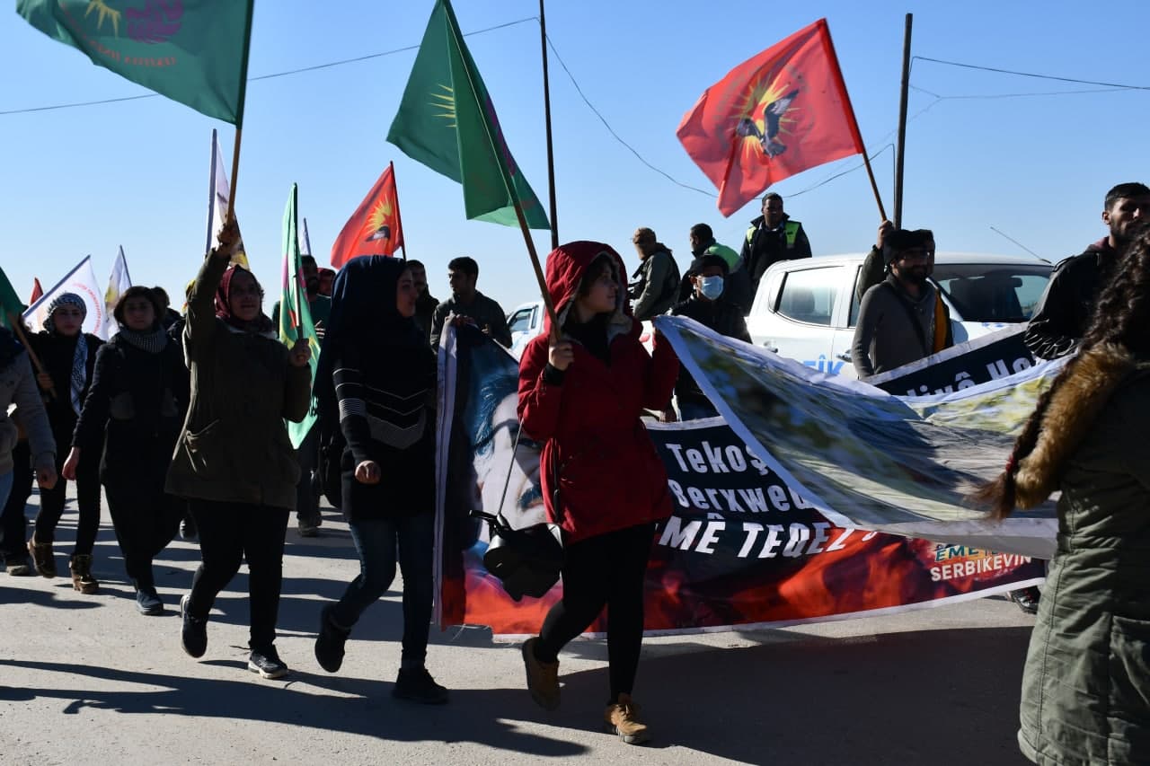 HESEKÊ – İhaneti ve işgalciliği yeneceğiz, mutlaka kazanacağız sloganı ile Tevgera Ciwanên Şoreşger ve Yekîtîya Jinên Ciwan öncülüğünde başlayan uzun yürüyüş ikinci gününde devam ediyor.