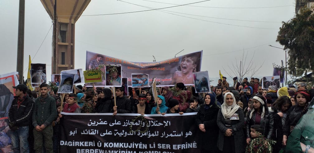 ROJAVA– Efrîn’in işgalci Türk devleti tarafından işgal edilmesinin yıl dönümünde Amûdê halkı Efrîn için sokaklardaydı.