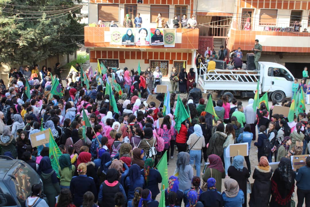 Tirbespîyê’li kadınlar ve genç kadınlar ise 25 Kasım vesilesi ve işgal saldırılarını protesto etmek için Kongra Star binasından Gençlik Merkezi’ne kadar yürüdü.