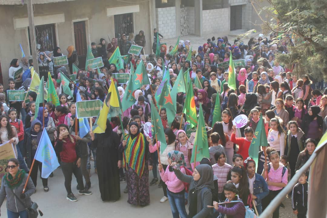 Yürüyüşün ardından konuşan Suriye Demokratik Meclisi (MSD) Eşbaşkanı Emine Umer, “Kadına yönelik şiddetin durması için verilen direnişi kutluyorum. Geçmişten bu yana erkek egemen zihniyet kadına yönelik şiddetini devam ettiriyor. Tarih boyunca kadınlar kolayca öldürülüyor ve kurban ediliyor. Kadın bedeniyle alay ediliyor, kadınlar cinsel istismara maruz kalıyor” diye konuştu.