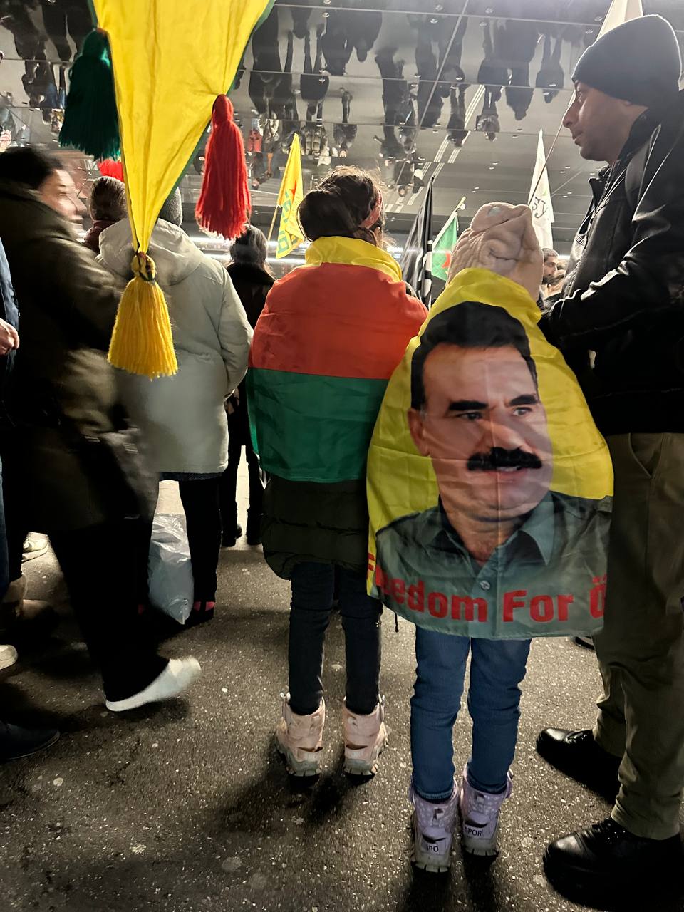 Eylemde sık sık “Bijî Serok APO”, “Bijî Berxwedana YPG” ve “Bijî Berxwedana Rojava” sloganları atıldı. Ayrıca Çerxa Şoreşe ve Rojava Marşları okundu.