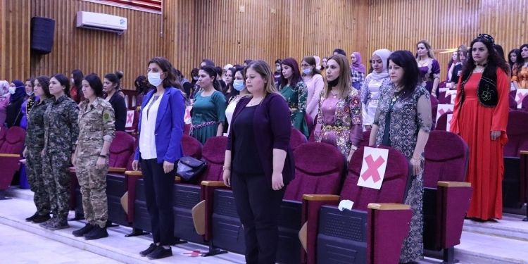 Toplantıda konuşan Kuzey ve Doğu Suriye Üniversiteleri Komitesi Eş Başkanı Rohan Mistefa, Rojava Devrimi’yle birlikte kadınların tüm alanlarda örgütlendiğini belirterek, “Temelini binlerce yılın mücadelesinden alan bu devrim ile kadınlar ataerkil zihniyete karşı mücadelesini sürdürüyor. Kadınlar büyük bedeller ödemiştir çünkü sadece saldırılar karşısında savaşmamış, aynı zamanda zihniyet ve geleneklere karşı da mücadele vermiştir” dedi.