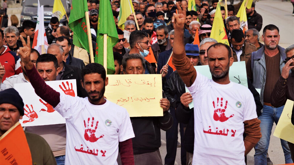Kuzey ve Doğu Suriye’deki kadın hareketlerinin “Şiddeti yok etmek için işgale karşı mücadele et” şiarıyla düzenlediği yürüyüşe binlerce Hesekêli erkek katıldı.
