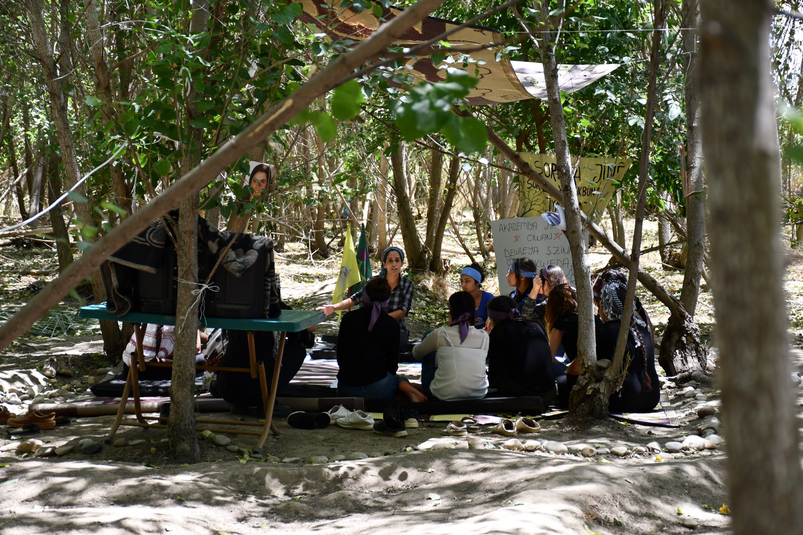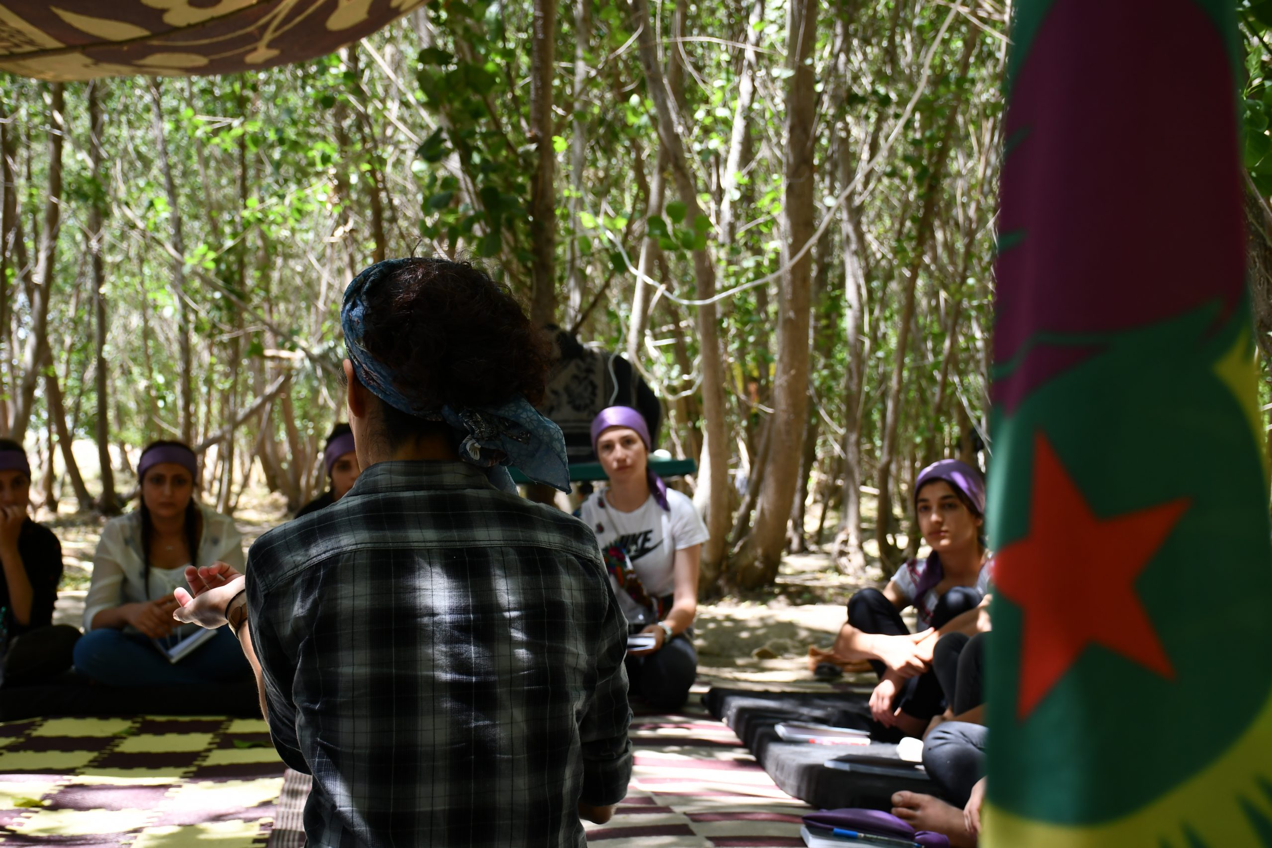 Ajansımız kampı ziyaret ederek genç kadınlar eğitim ve son dönemde kadınlar üzerinde artan şiddete karşı genç kadınların düşüncelerini aldık. Hebûn isimliEfrîn’de işgalci Türk devletinin kadınlar üzerindeki saldırılarına dikkat çekti ve devam etti, ” Öncelikle bu kamp ortamında eğitim görmemizin nedeni kadın ile doğa arasındaki bütünselliği yeniden yakalamak. Eğitim almak herkes için hayati bir öneme sahiptir özellikle genç kadınlar için bilinçlenmek ve kendini eğitmek daha da önemlidir. Kadın bastırılmış ve ideolojik olarak iradesi kırılmıştır. Bunun en son örneği ise Efrîn’de kadınlara yönelik gelişen şiddet ve tecavüzde görüyoruz. Kadınlar işgalci Türk devletinin her türlü insanlık dışı işkenceleri ile yüz yüze kalıyor. Kadının toplumdaki iradesini kırarak, toplumu iradesiz bırakmak amaçlanıyor. Genç kadınlar olarak bu zihniyetin karşısında durmalı ve bu  zihniyete karşı her zaman mücadele içinde olmalıyız.” dedi.