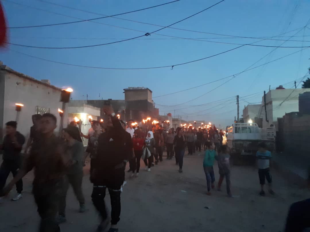 QAMIŞLO – Yekitiya Jinen Ciwan (YJC) ve Tevgera Ciwanên Şoreşger öncülüğünde Halklar Önderi Abdullah Öcalan üzerindeki tecride karşı Rojava2nın Qamışlo kentinden Nisêbîne doğru meşaleli yürüyüş eylemi gerçekleştiriyor.