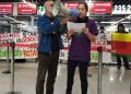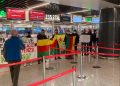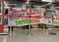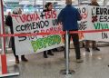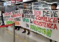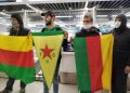 İtalyanca “Rojava ile dayanışma, Rojava için ayağa kalk ve Rojava’ya saldırıları durdur” yazan pankartlar ile gişe önünde eylem yapan gençler, THY’nin işlem yapmasını bir süre engelledi.