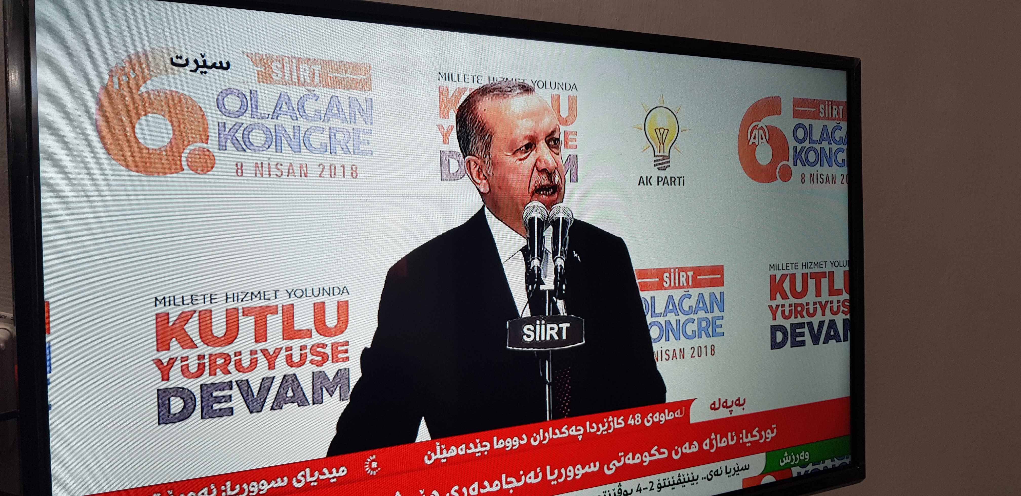 KDP’nin televziyonu işgalci Erdoğan’ı ekranlarına canlı taşıyarak konuşmasını Soranice’ye çevirdi.
