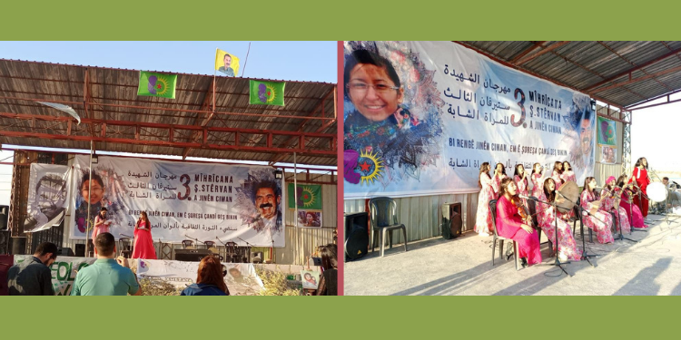 ŞEHBA – “BI RIHÊ JINÊN CIWAN EMÊ ŞOREŞ ÇANDÎ GEŞ BIKIN” şiarıyla yapılan 3’üncü Ş. Stêrvan genç kadın festivali Şehba’da başladı.
