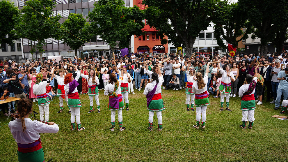 Konuşmaların ve mesajların ardından ise Biel Çocuk Korosu, İsviçre Folklor Ekibi ve Katalan Kadın Dans grubu tarafından gösteriler düzenlendi. Yoğun ilginin olduğu gösteriler boyunca sık sık hep bir ağızdan “Jin Jiyan Azadî” sloganı atıldı.