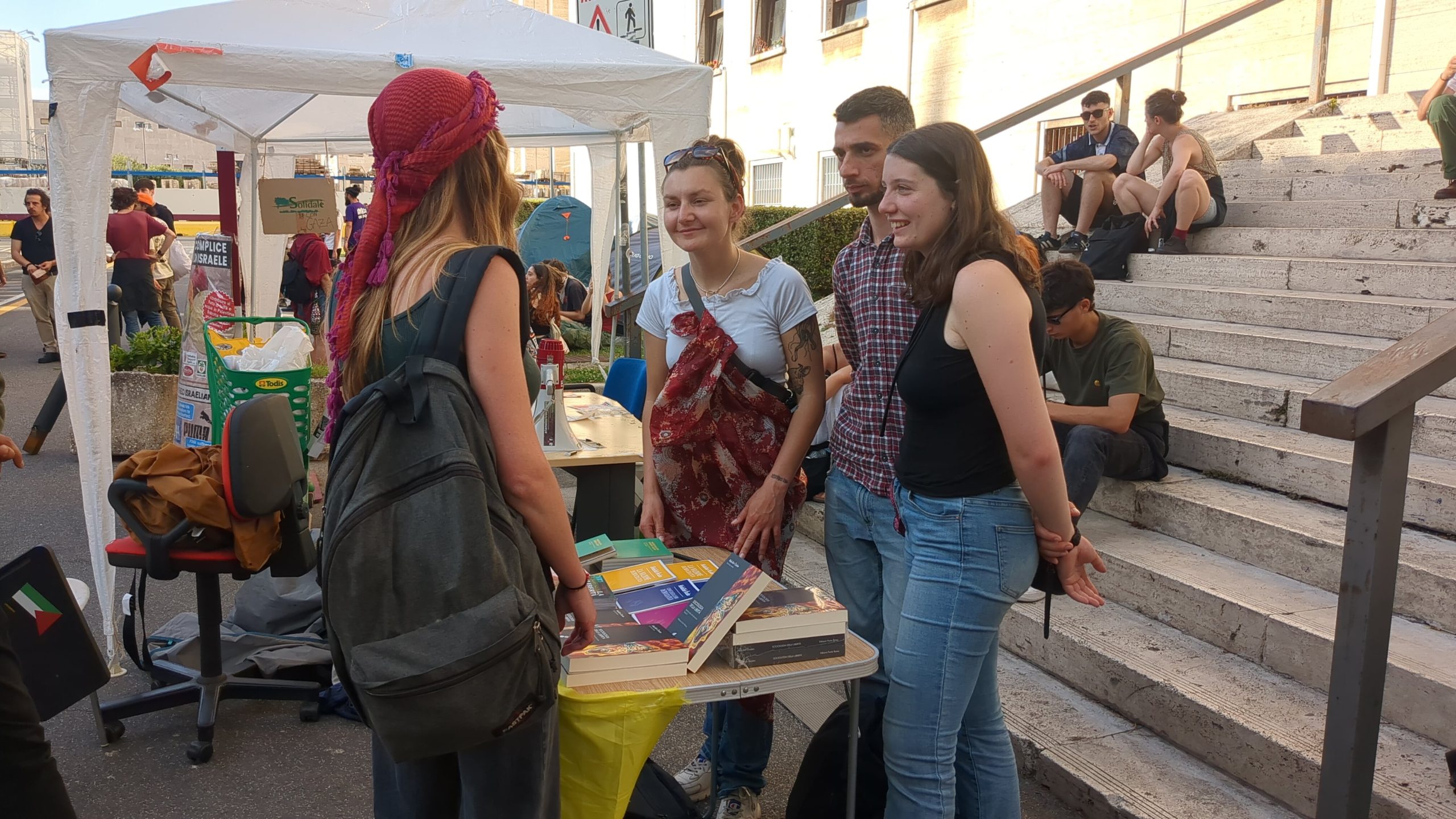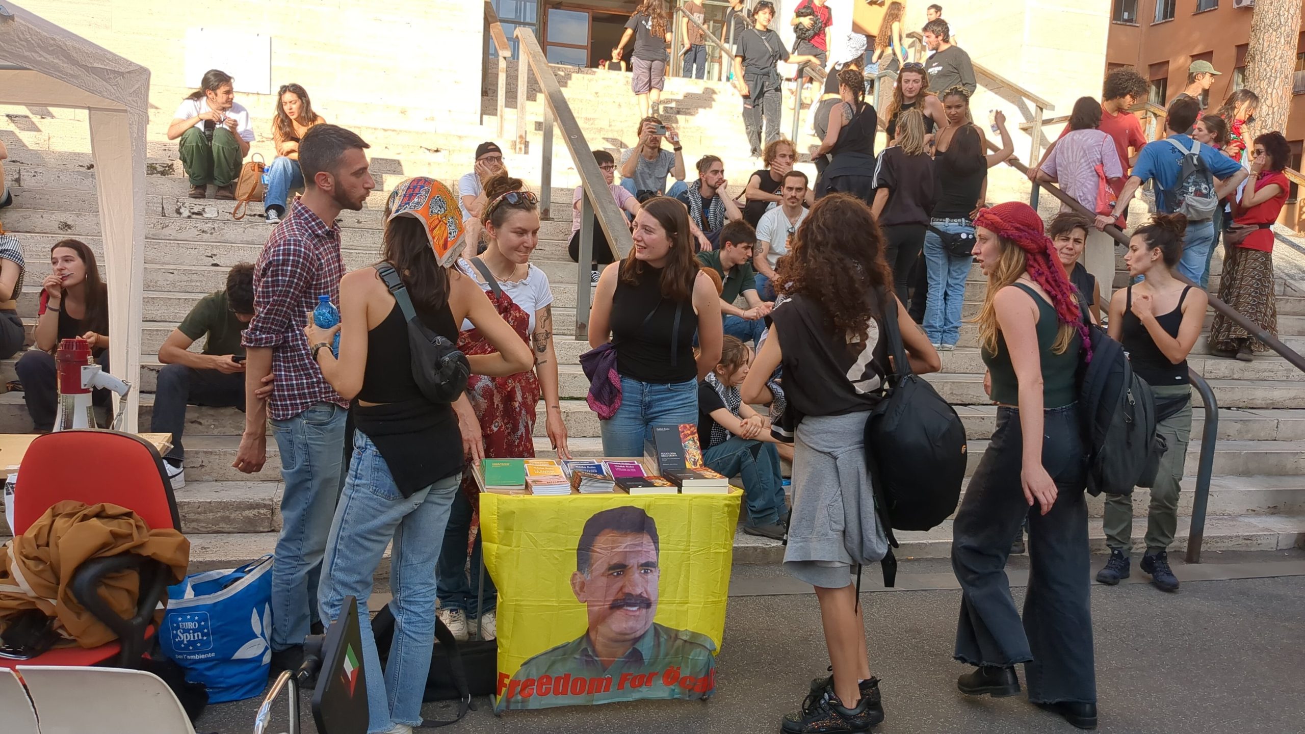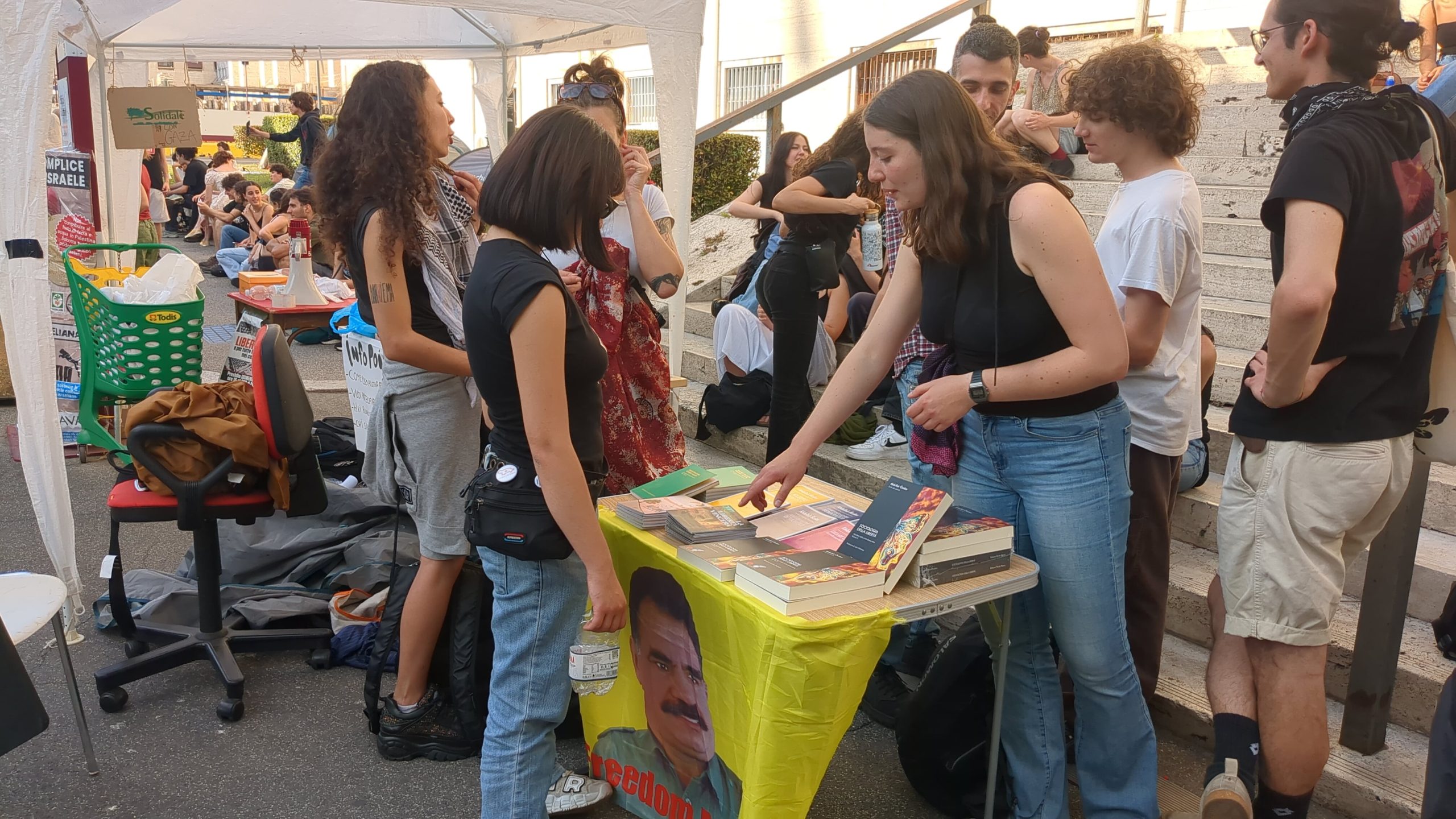 Yürüyüş ardından genç kadınlar Roma’da bulunan Sapienza üniversitesinde Önder APO’nun kitaplarının bulunduğu bir stant açtı. Yüzlerce insanın ilgi gösterdiği stantta Önder APO’nun paradigması ve kendisine dair bilgilendirmeler yapıldı.