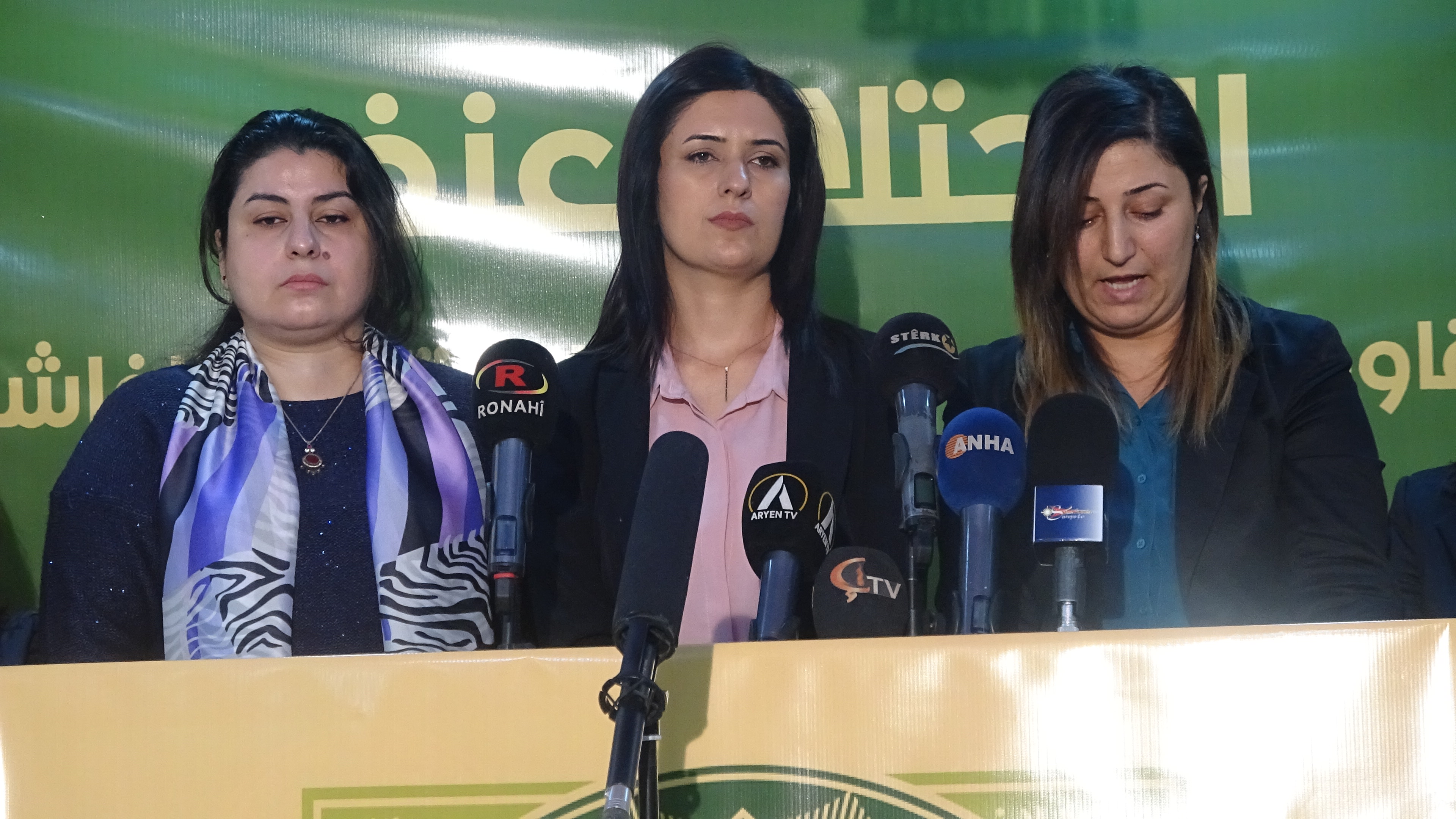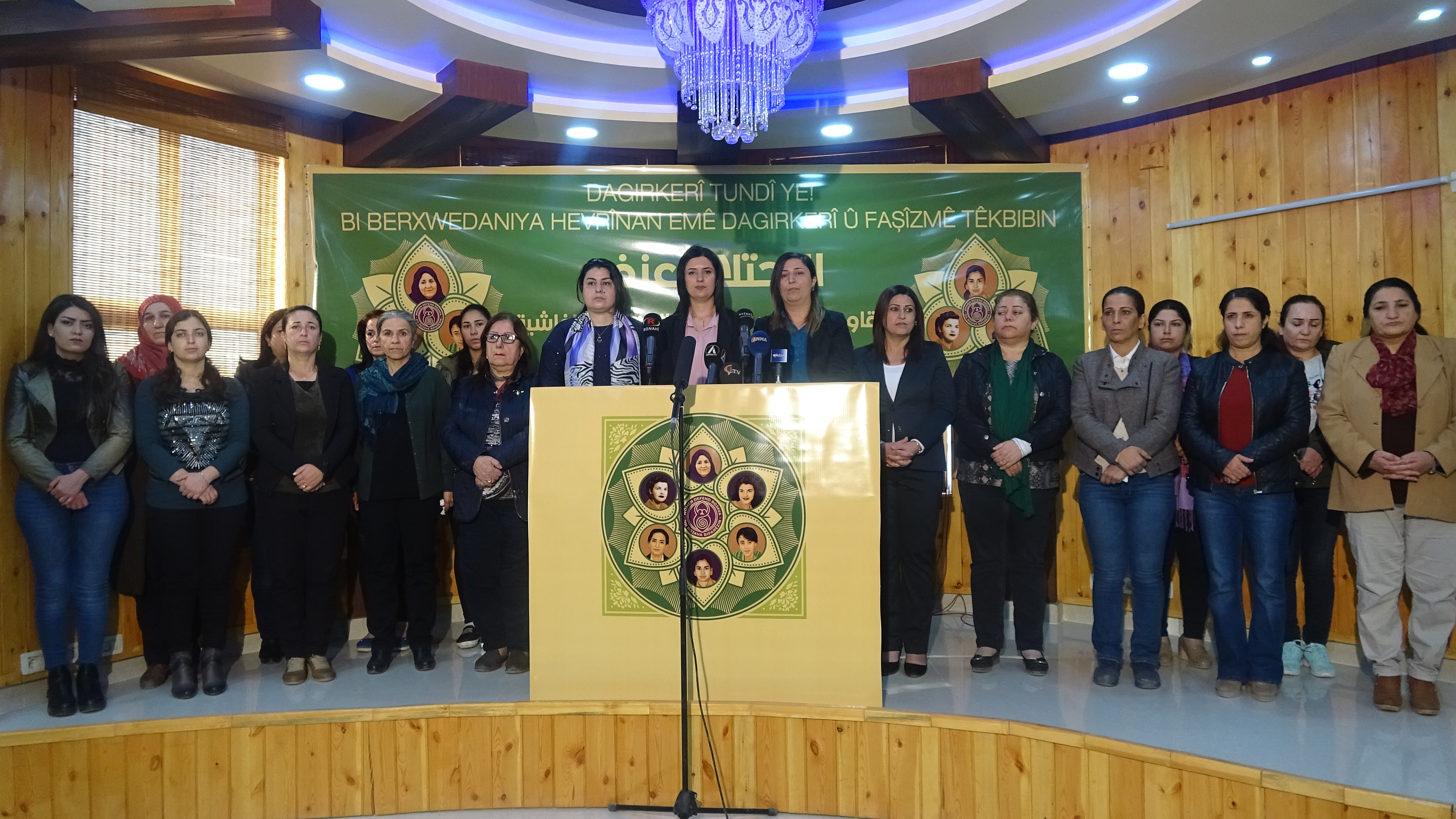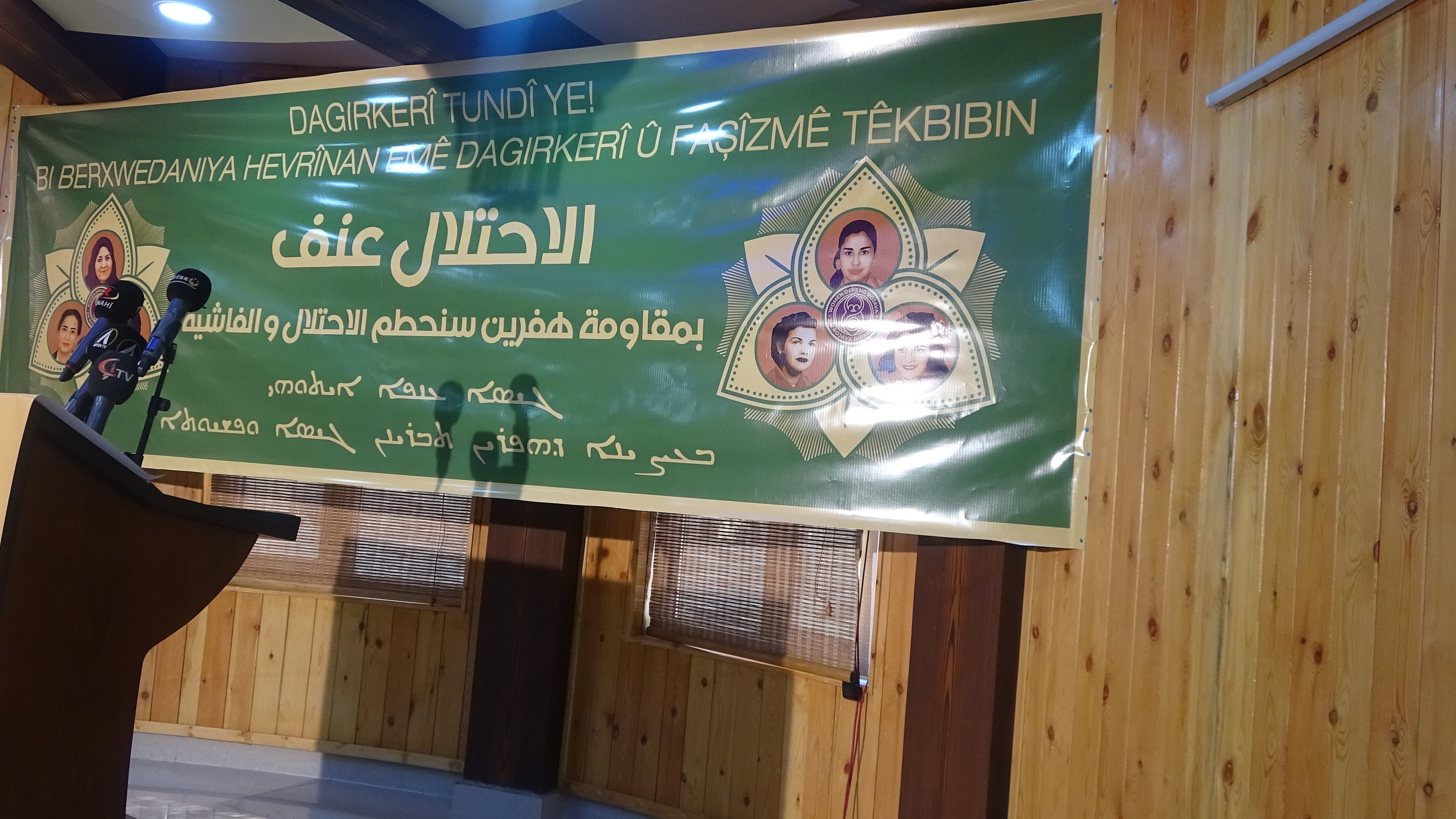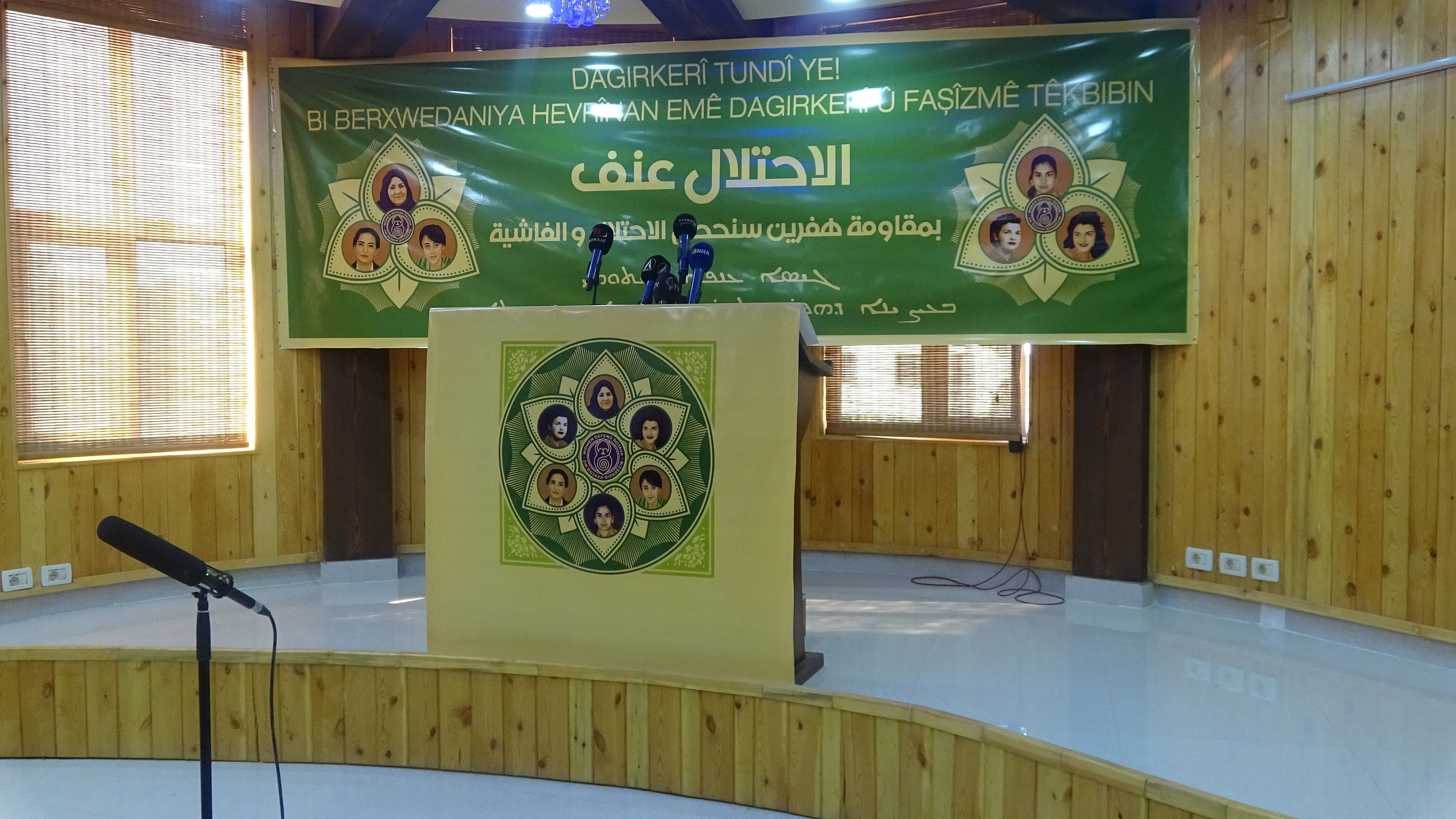 QAMIŞLO- Bu yıl ki 25 Kasım etkinliklerini işgalci Türk devletine bağlı çeteler tarafından katledilen Suriye Gelecek Partisi Genel Sekreteri Hevrin Xelef’e, YPJ savaşçısı Amara Rênas’a ve Kadın Adaleti Meclisi Üyesi Aqide Ana’ya adayan Rojava Kurdistan’ı ve Kuzey Suriye Kadın Örgütleri, bugün Qamişlo’daki Özerk Yönetim Dış İlişkiler Merkezi binasında gerçekleştirdiği ortak basın açıklamasında, “Şehit arkadaşlarımızın anısına 25 Kasım etkinliklerimizi “Şiddet işgaldir! Hevrînlerin direnişiyle işgal ve faşizmi yenelim” şiarıyla gerçekleştireceğiz.” Dedi.