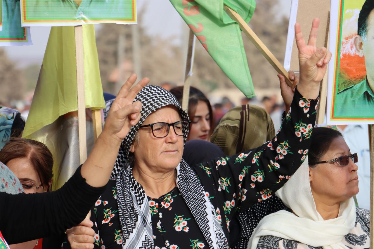 Burada Efrîn Kantonu Kadın Hareketi adına konuşan Ferîde Îbo, “Kürt halkı Önder Abdullah Öcalan’ın fikirlerini takip ediyor. Önderliğin fiziki özgürlüğünü sağlamak ve Kürt sorununu çözmek için mücadeleyi sürdürecek” dedi.
