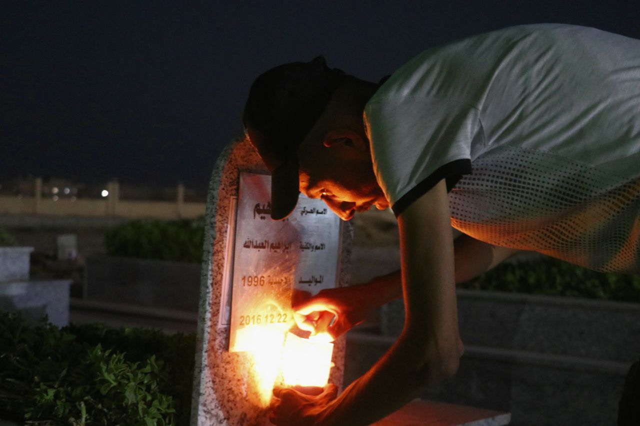 Tebqa Şehitliğinde bir araya gelen onlarca genç ve genç kadın Zeneboya Kadın Derneği üyelerinin de katılımıyla her üç şehidi anma vesilesiyle devrim şehitlerinin mezarlarına mumlar bıraktı.