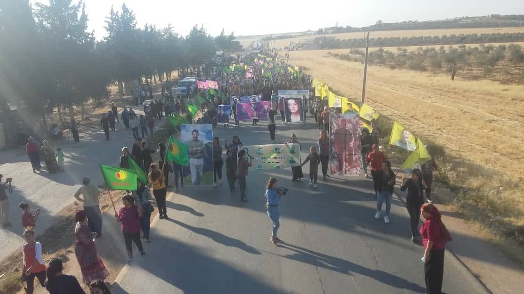 Şehba bölgesi Ehdas ilçesine bağlı Til Qirah köy yolunda başlayan yürüyüş, Serdem Kampı’na kadar devam etti.