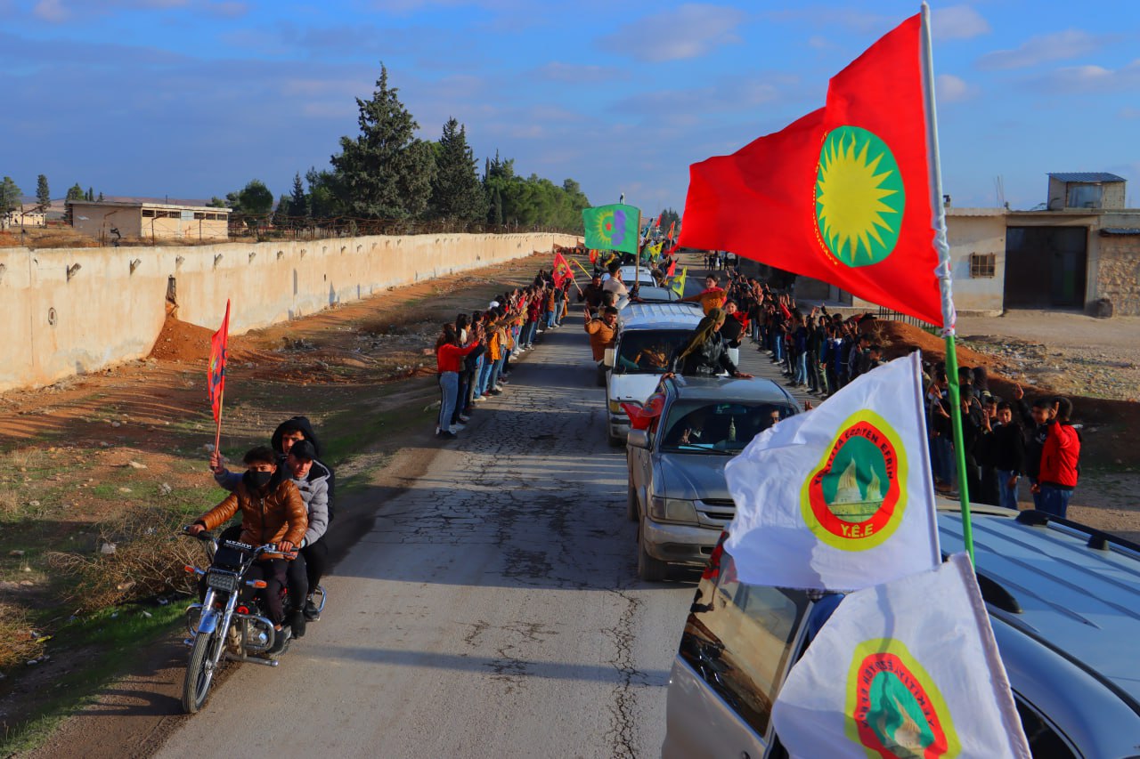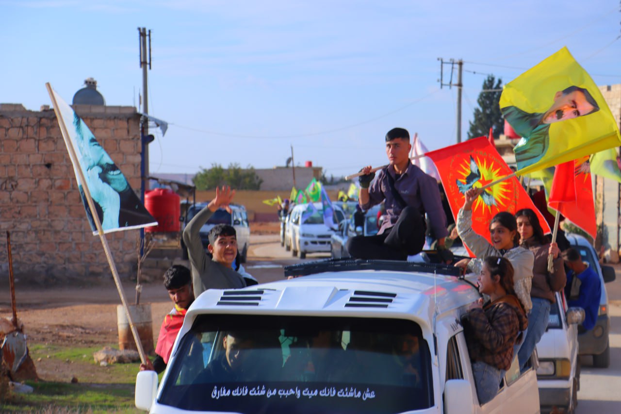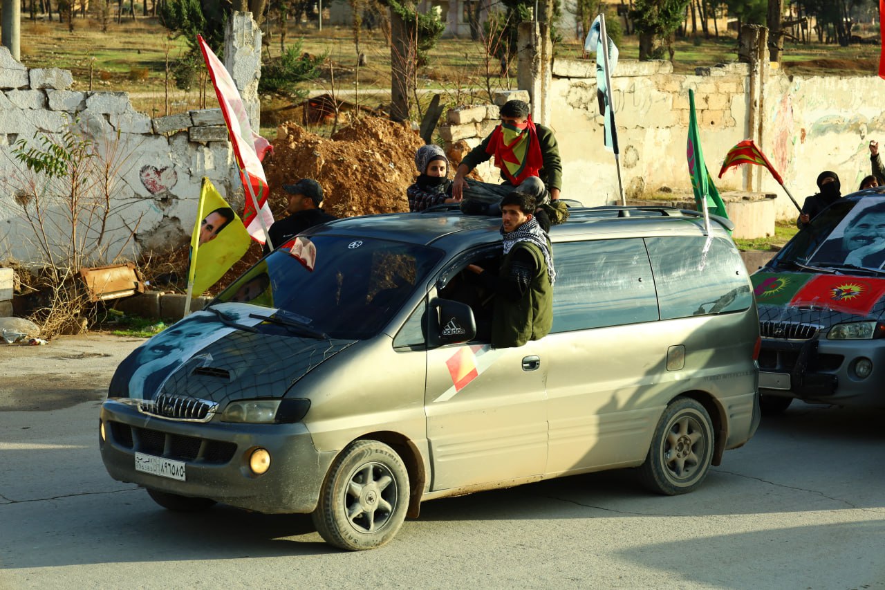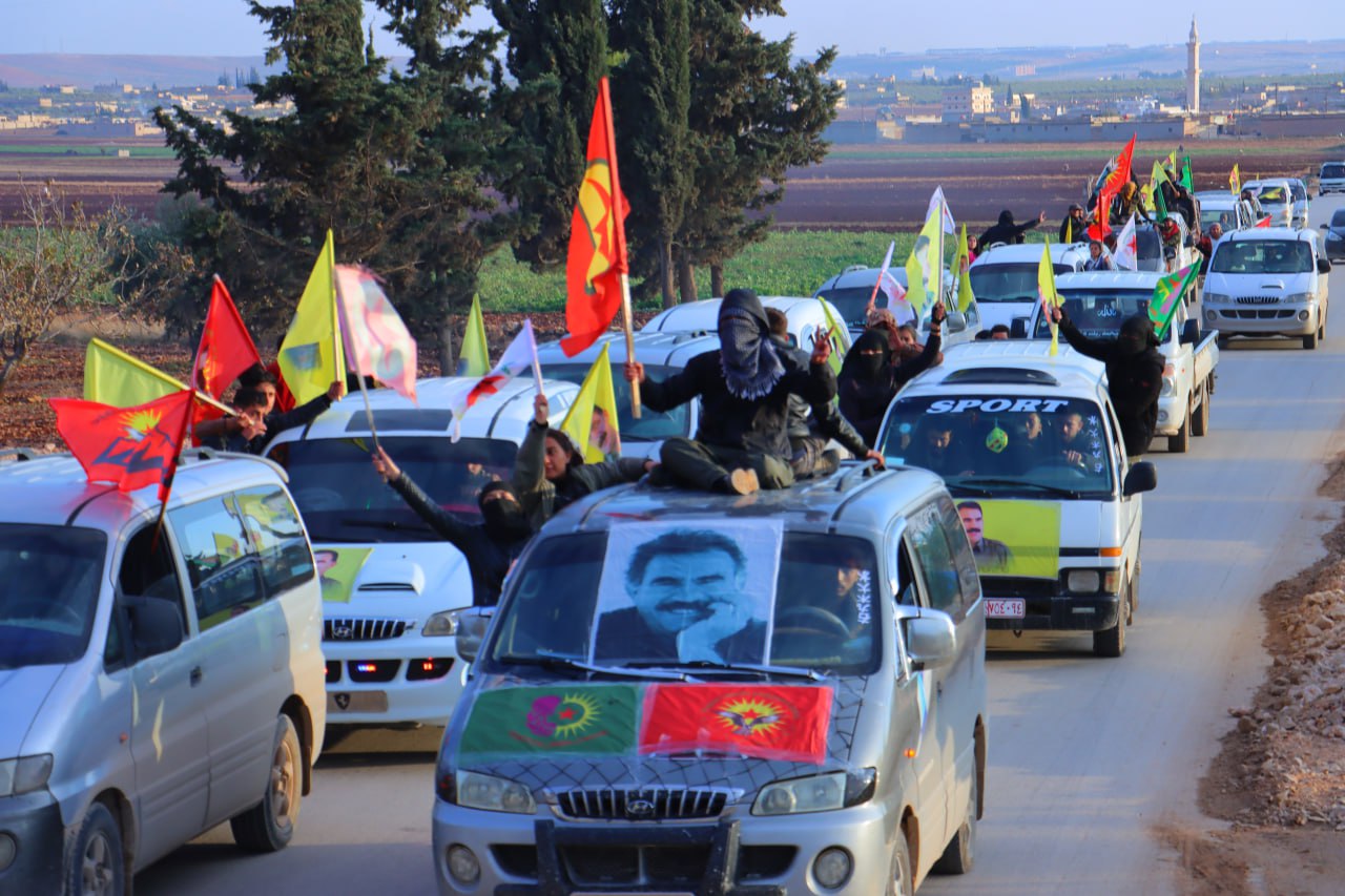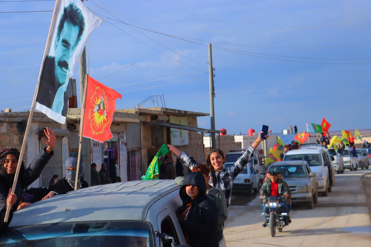 Gençler, Diriliş bayramını kutlamadan önce onlarca araçlar ile Şehba ve çevresinde saatlerce konvoy eşliğinde Bijî Serok APO” “Bijî Partiya Karkerên Kurdîstan” sloganları attı.