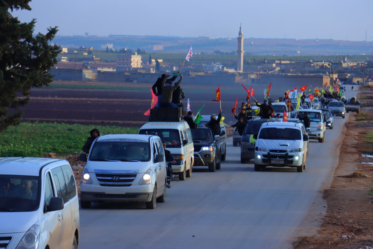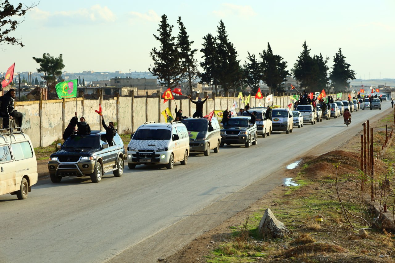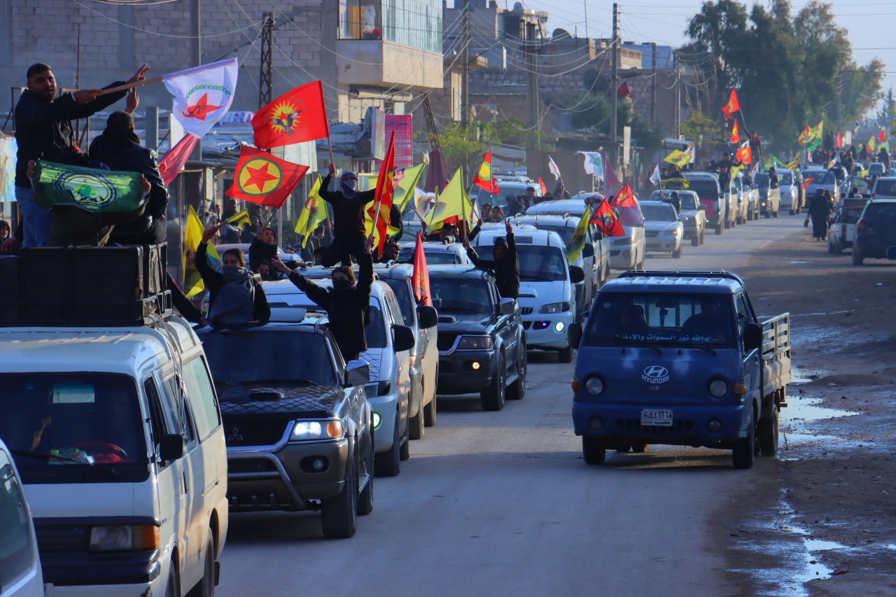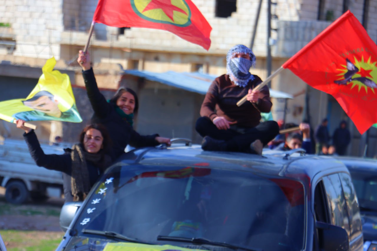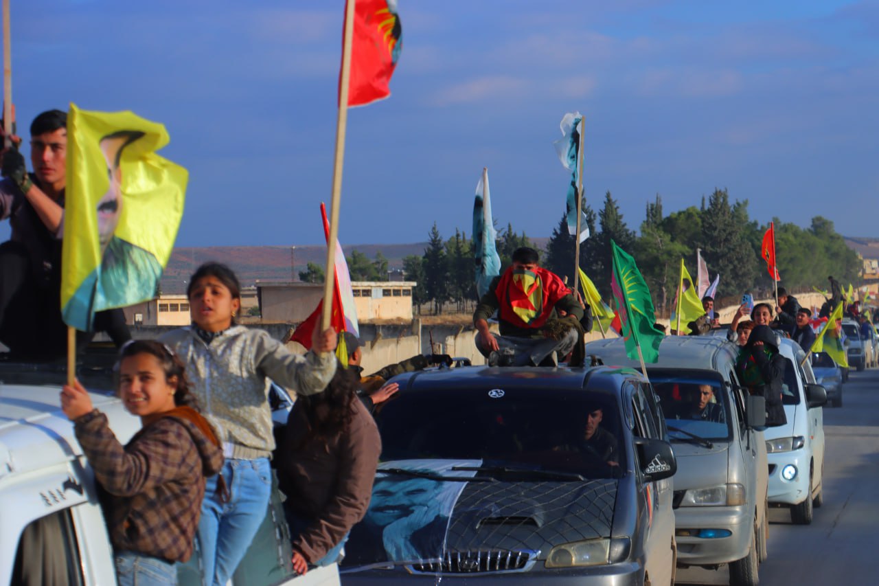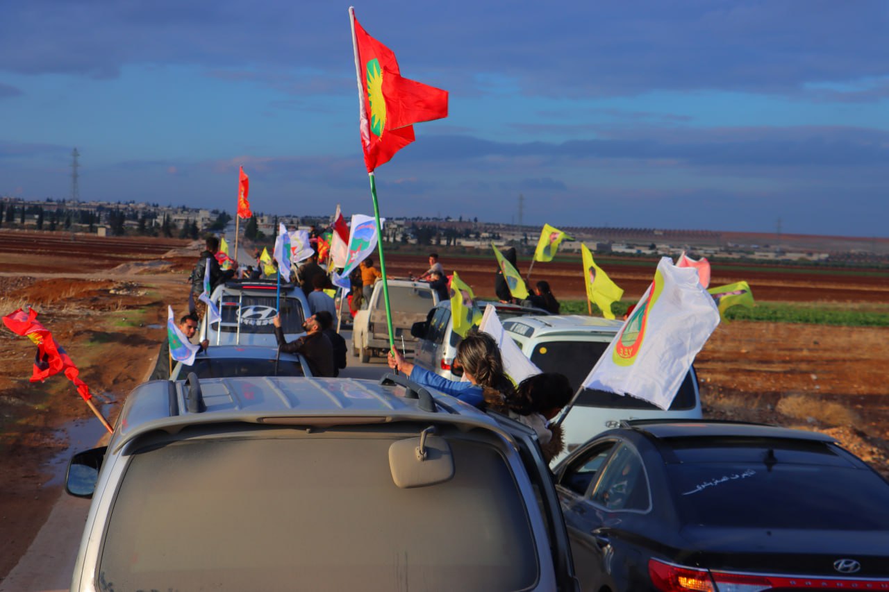 Gençler, Diriliş bayramını kutlamadan önce onlarca araçlar ile Şehba ve çevresinde saatlerce konvoy eşliğinde Bijî Serok APO” “Bijî Partiya Karkerên Kurdîstan” sloganları attı.
