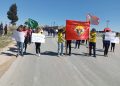 Babinis ilçesinden başlayan onlarca spor birliği üyesi, gençlik ve genç kadının katılımıyla başlayan yürüyüş, Babinis Futbol Stadyumu’na doğru devam etti.