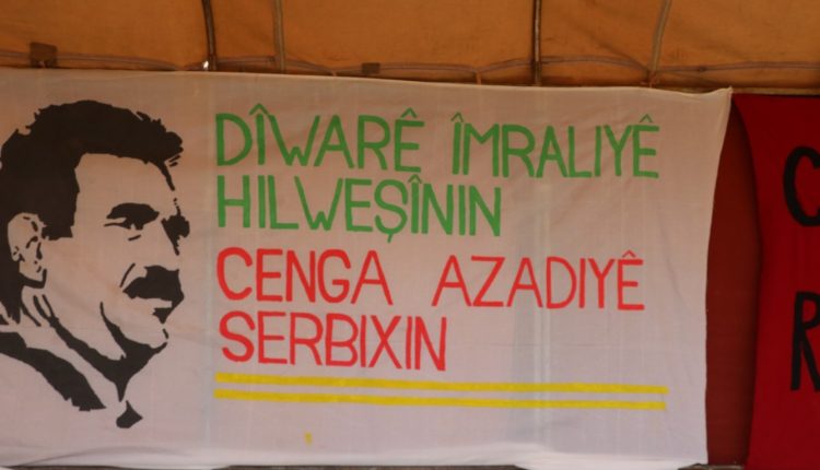 “İmralı duvarını yıkın, özgürlük savaşını kazanın” sloganıyla düzenlenen etkinlikte Önder Apo’nun fotoğrafları sergilendi. Kitle tarafından sık sık “Dîwarê Îmraliyê hilweşînin, cenga azadiyê ser bixin”, “Bê Serok jiyan nabe” sloganları atıldı.