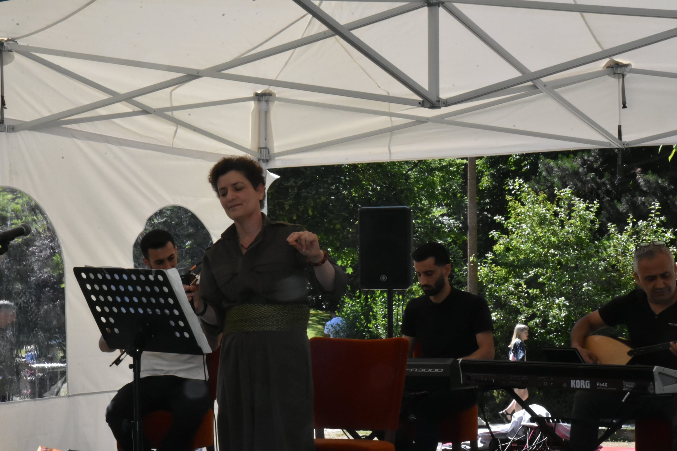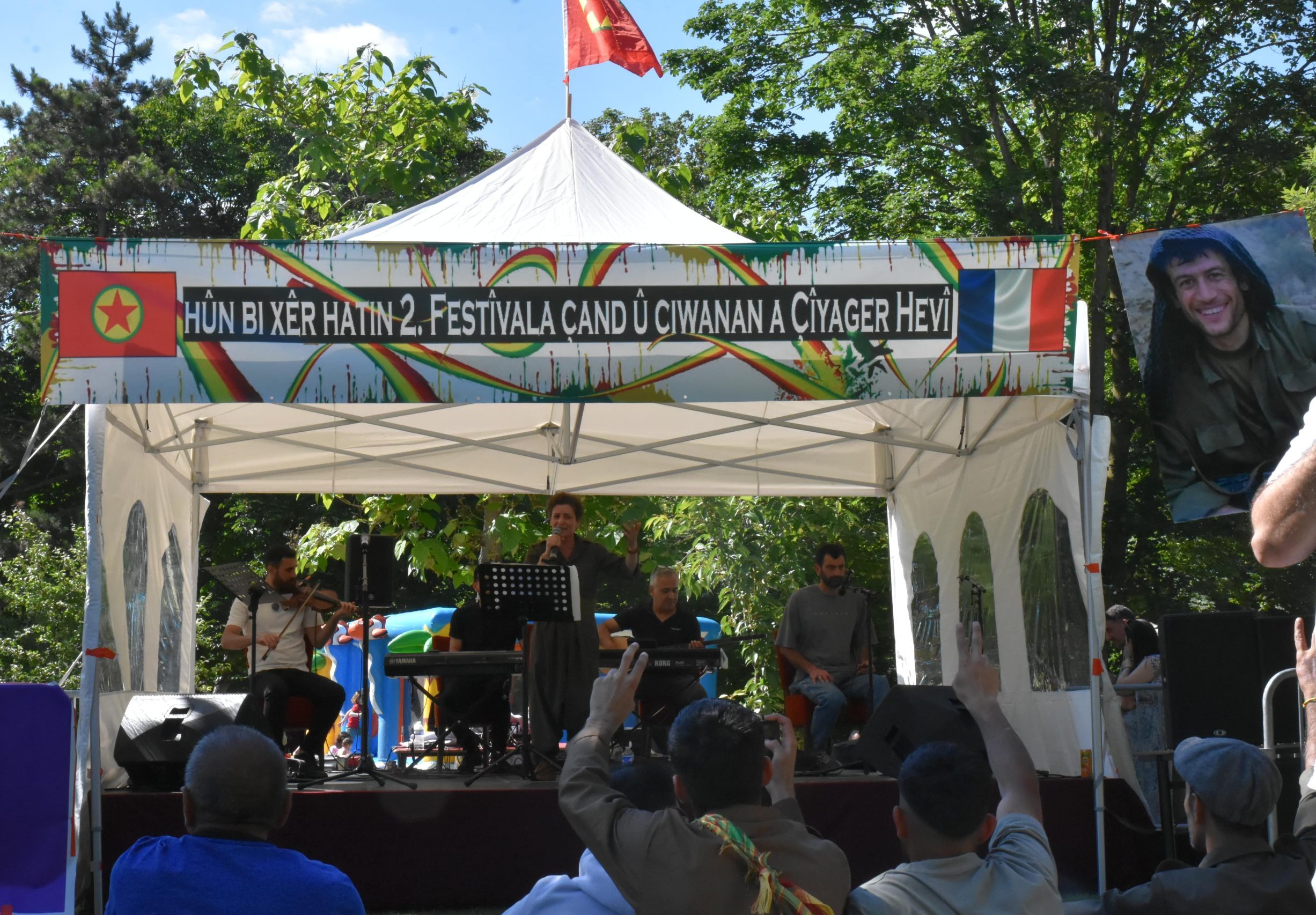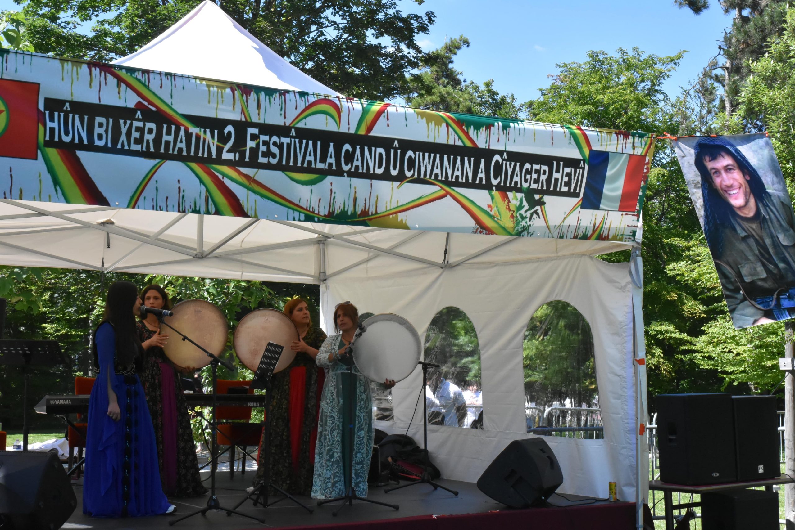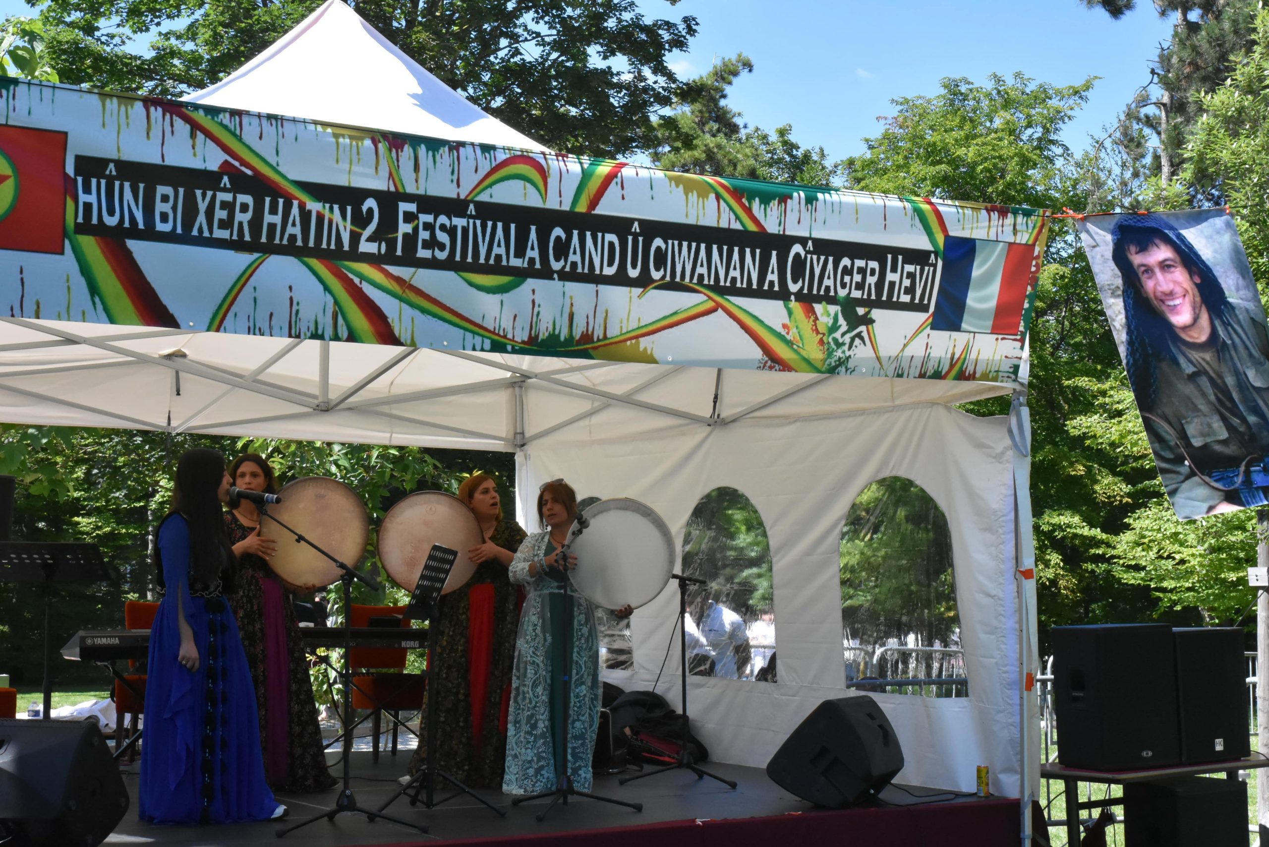 Şervan Varto ” Bugün dört parça Kürdistan’da savaş yürütülüyor. Ülkemizde savaş var. Bugün burada festival yapıyoruz, yürüyüş düzenliyoruz ama dağda savaşan gerillayı unutmamamız gerekiyor. Çünkü bize özgürlüğü getirecek olan savaşan gerillalardır. Tek sesle yaşamımızın her anında ve her yerde haykırmamız gerekiyor ‘Bê Serok Jiyan Nabe’ ” dedi.