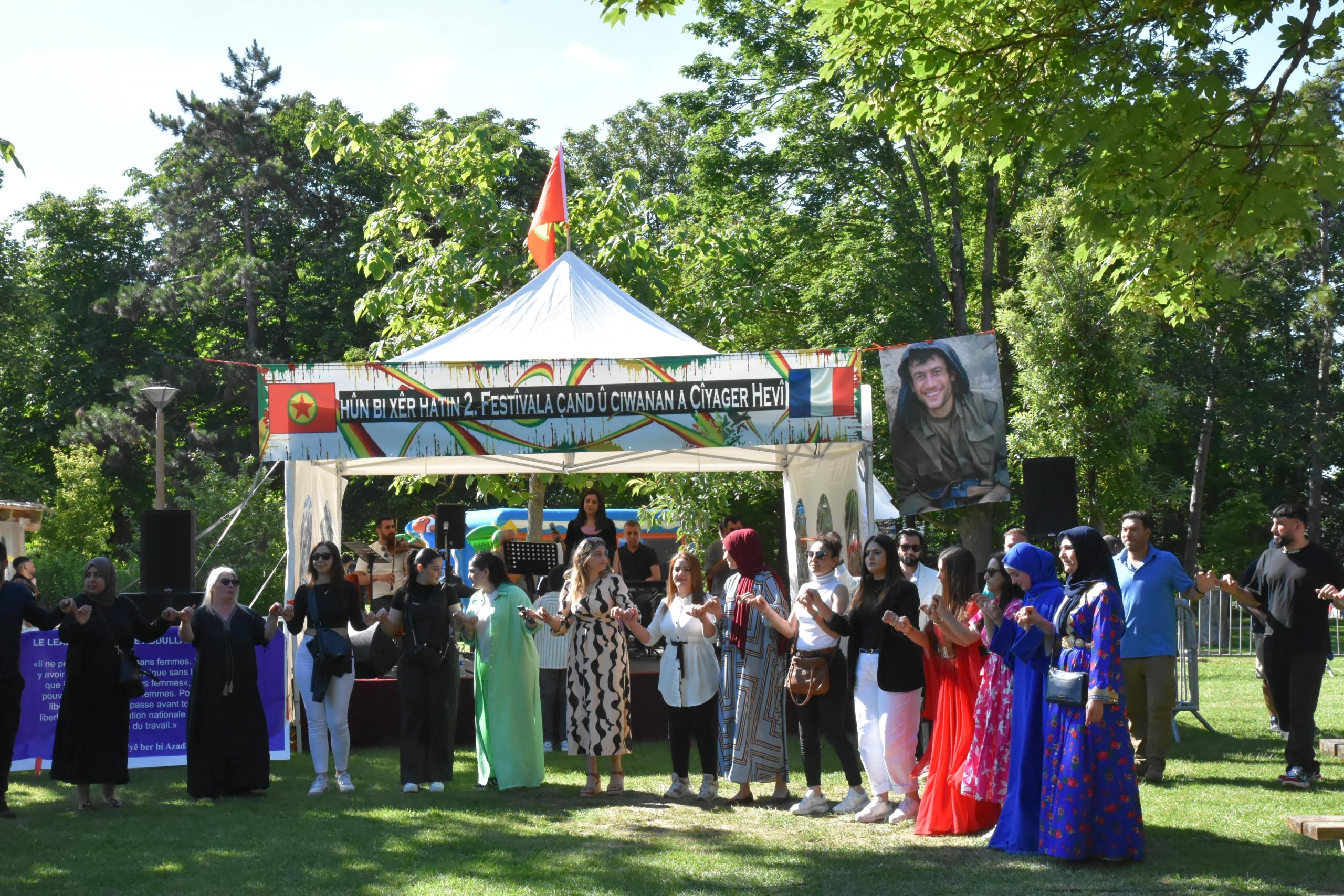 Sanatçıların şarkıları eşliğinde festivale katılan halk halaylara durdu. Halayda sık sık”Bijî Serok APO”, “Bé Serok Jiyan Nabe” ve ” Em APOcîne” sloganları atıldı.