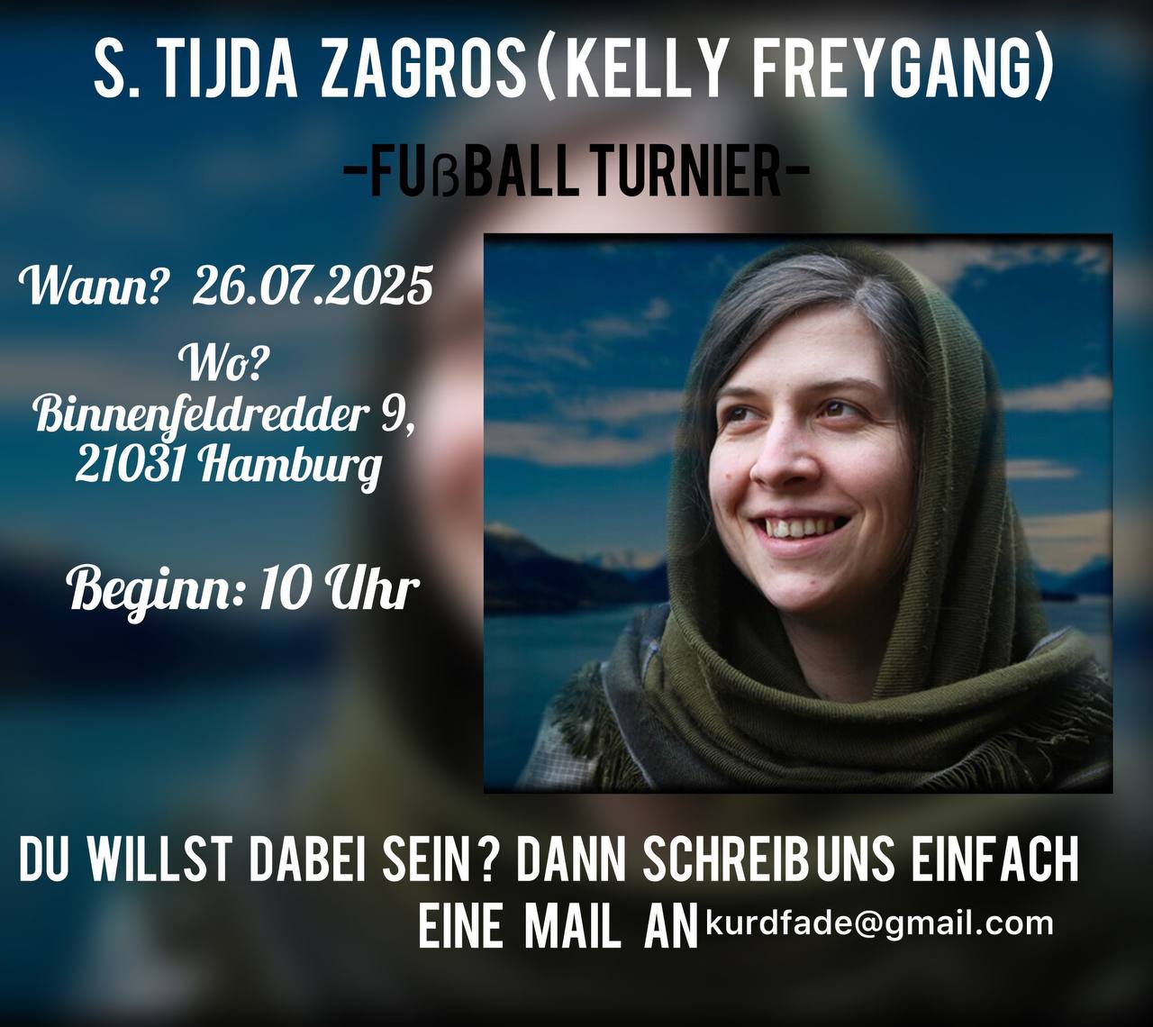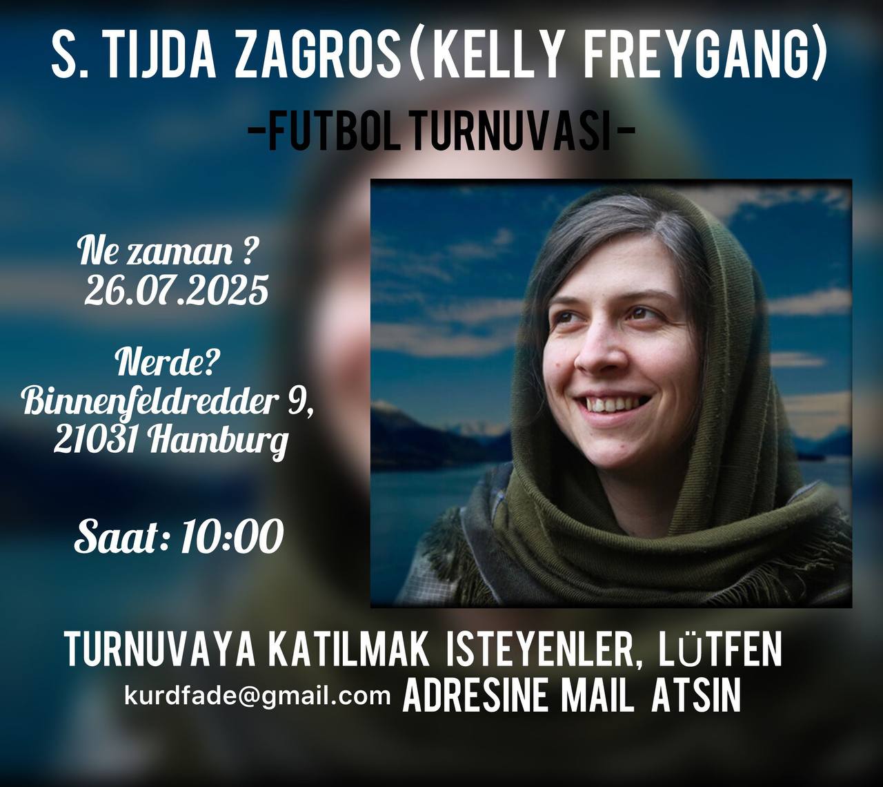 HAMBURG – Almanya’nın Hamburg kentinde 29 Nisan 2025’te Zap bölgesinde şehit düşen enternasyonalist Gerilla Şehîd Tîjda Zagros anısına bir futbol turnuvası düzenleniyor.