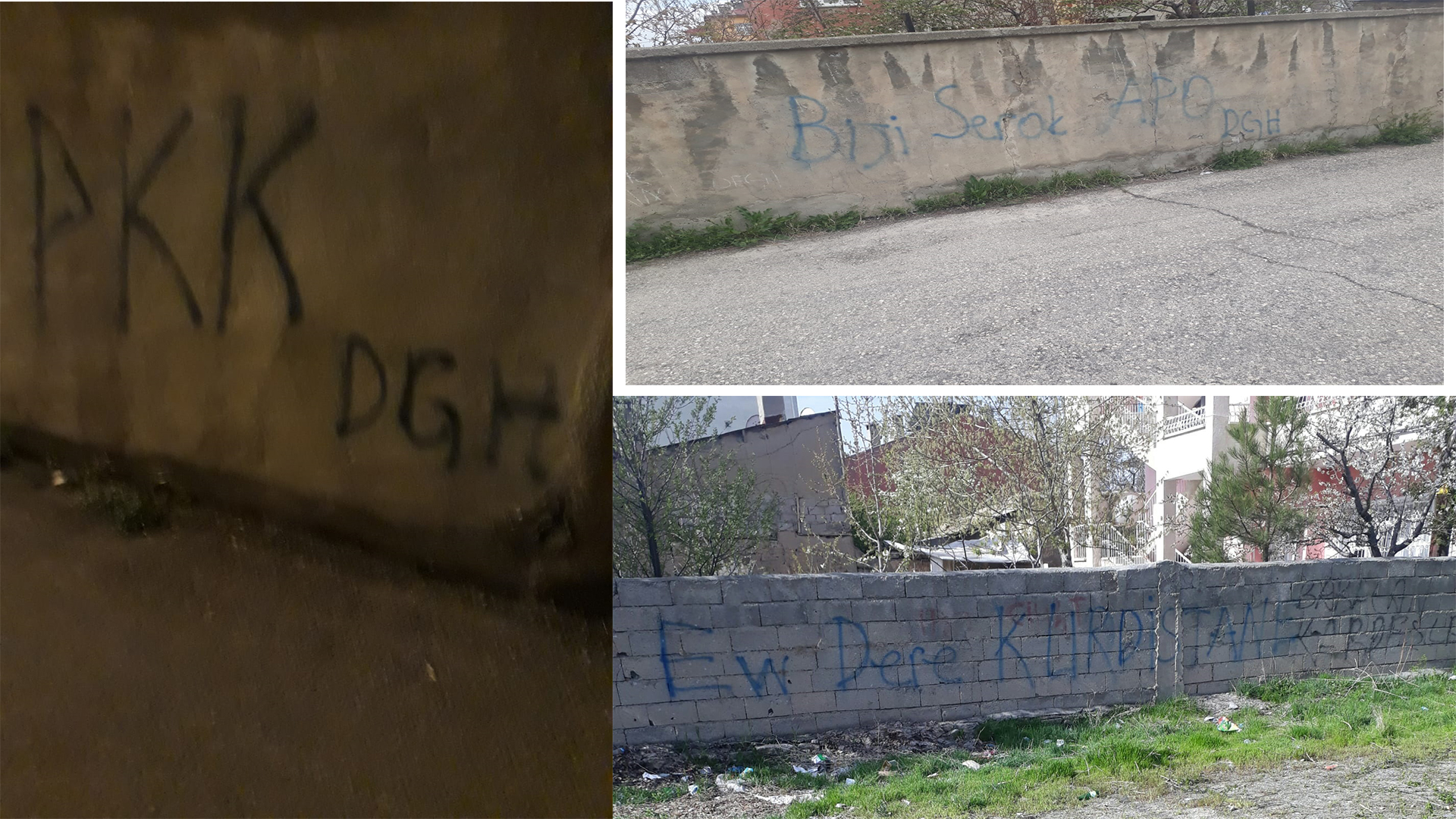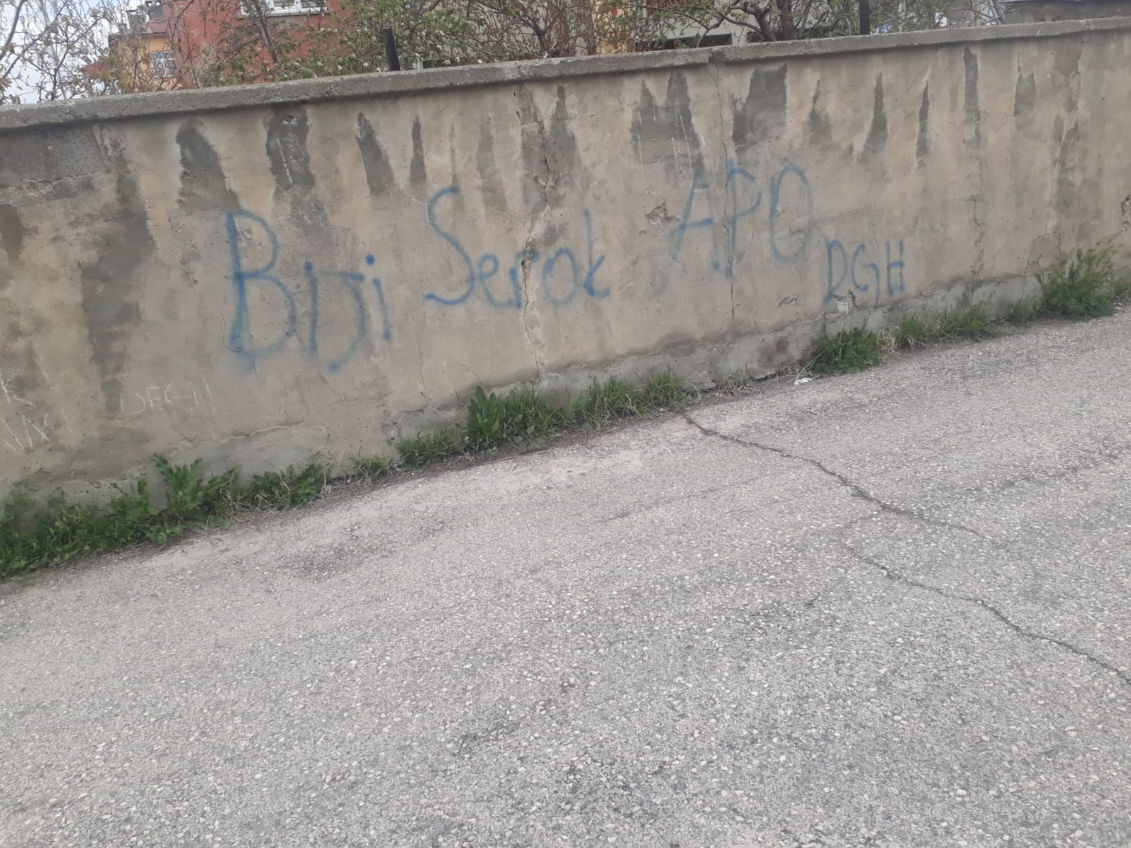 “Bijî Serok Apo, Bijî Berxwedana Zindana, PKK” sloganları ile duvarlara yazılamalar yapıldı.